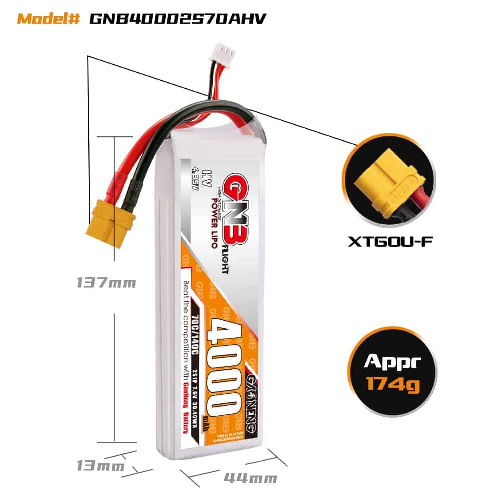 Batería LiPo GAONENG GNB LiHV 4000mAh 2S 7.6V 70C 140C XT60