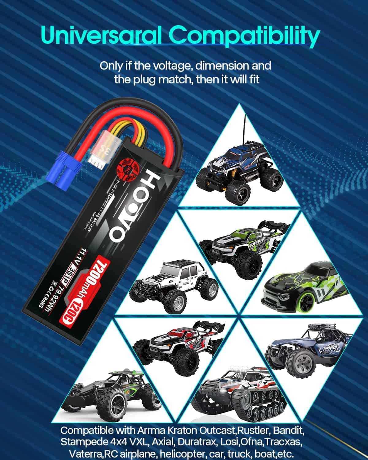 2 X Batería Lipo HOOVO 3S 11.1V 7200mAh 60C con Conector EC5