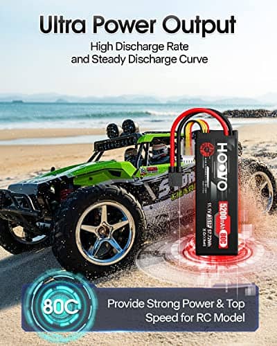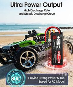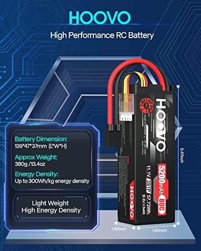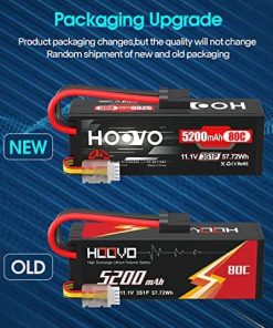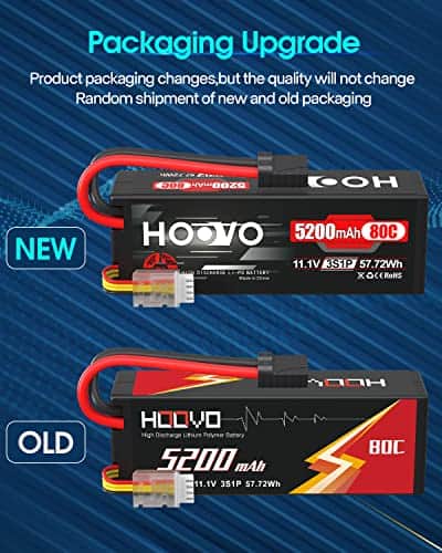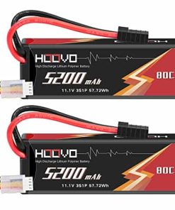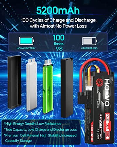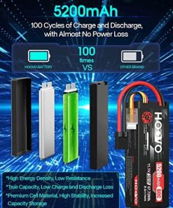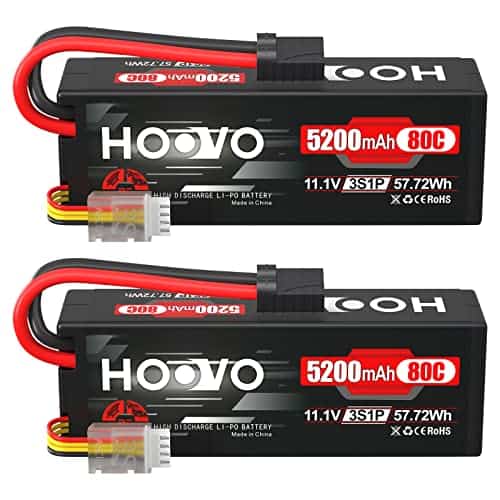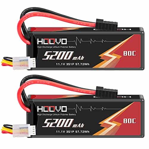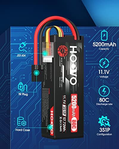 1. Batería Lipo HOOVO 3S 11.1V 5200mAh 80C con Estuche Rígido y Conector TR para Coche RC Barco Camión Truggy Carreras de Hobby Carreras de FPV Modelo (Paquete de 2) – Batería Lipo de alto rendimiento con capacidad de 5200mAh, vida útil prolongada (al menos 150 veces), hasta 200Wh/kg de densidad de energía. Más diversión con más tiempo de funcionamiento.
