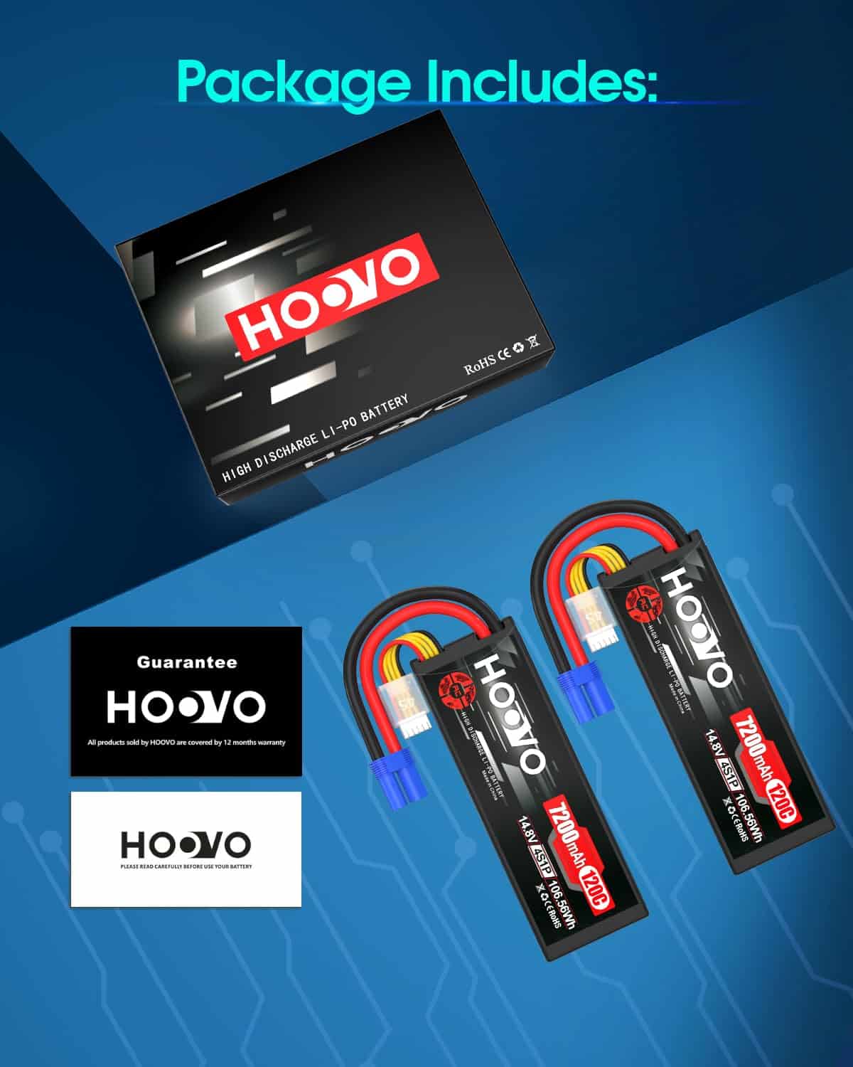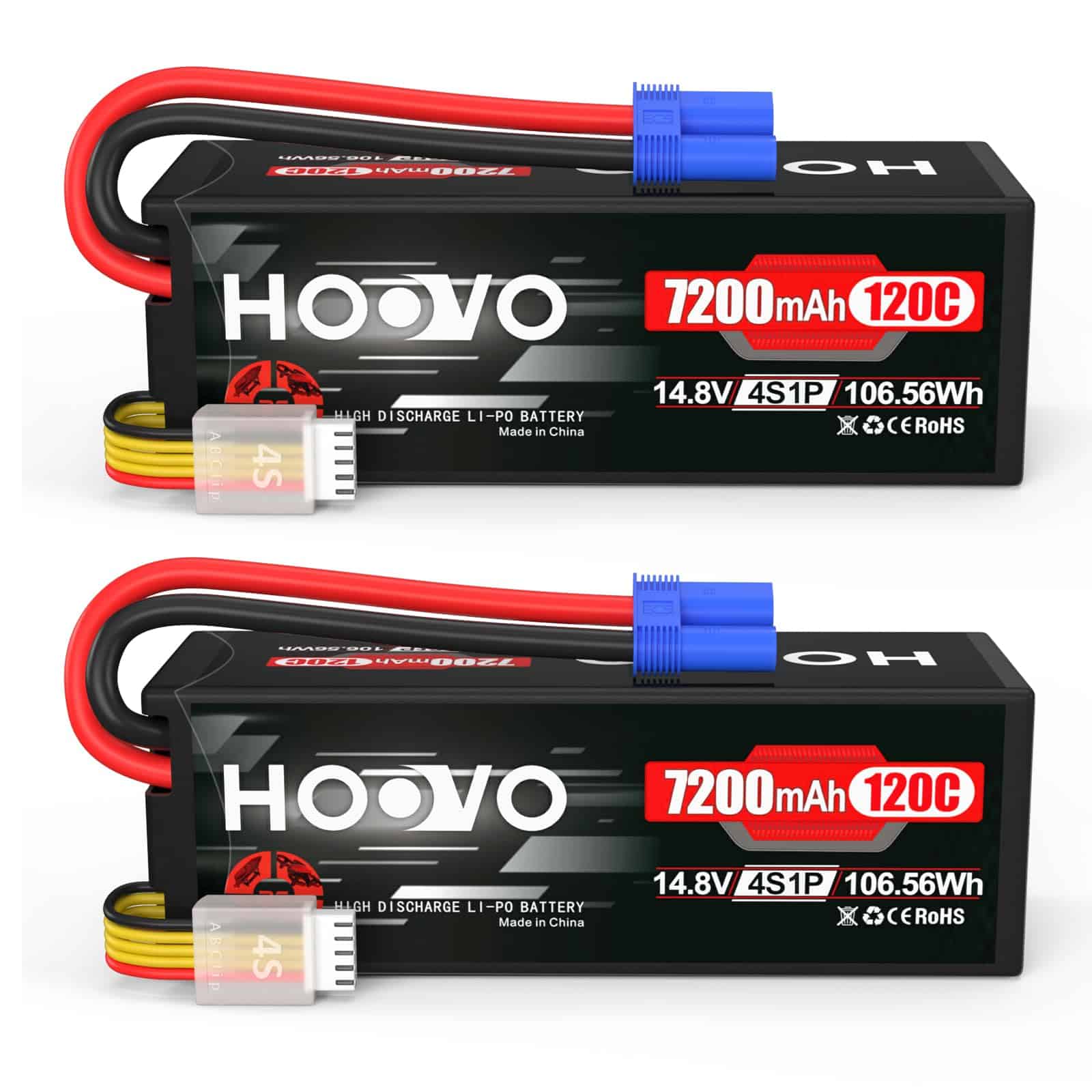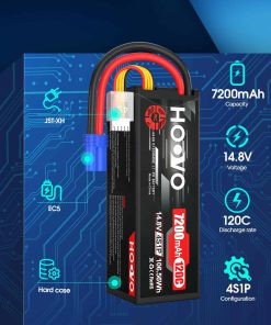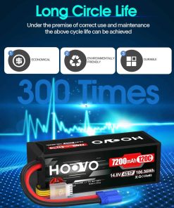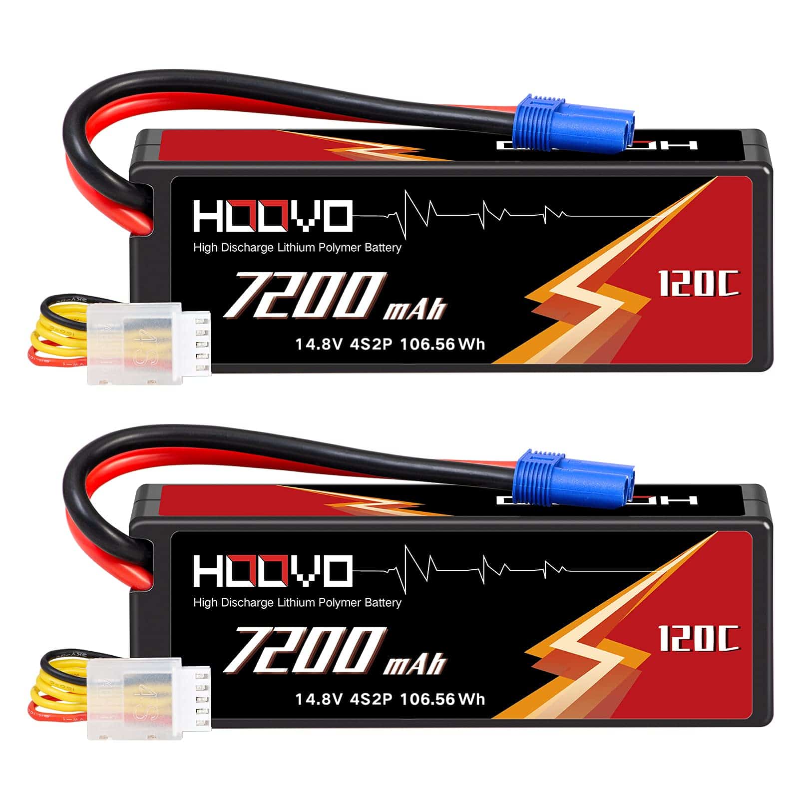 Contenido del Paquete: 2 X Batería LiPo HOOVO 4S 7200mAh 14.8V 120C Estuche Rígido con Conector EC5