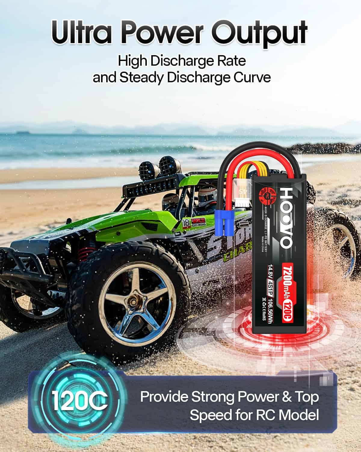 – Alta tasa de descarga y curva de descarga estable hacen que tu vehículo RC funcione de manera potente.