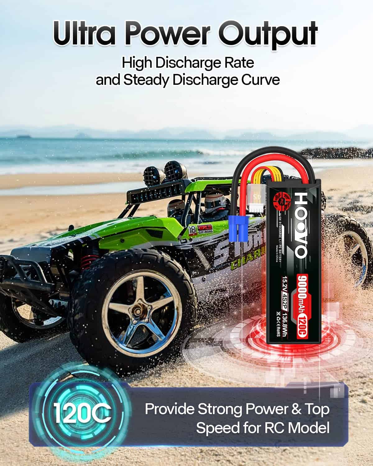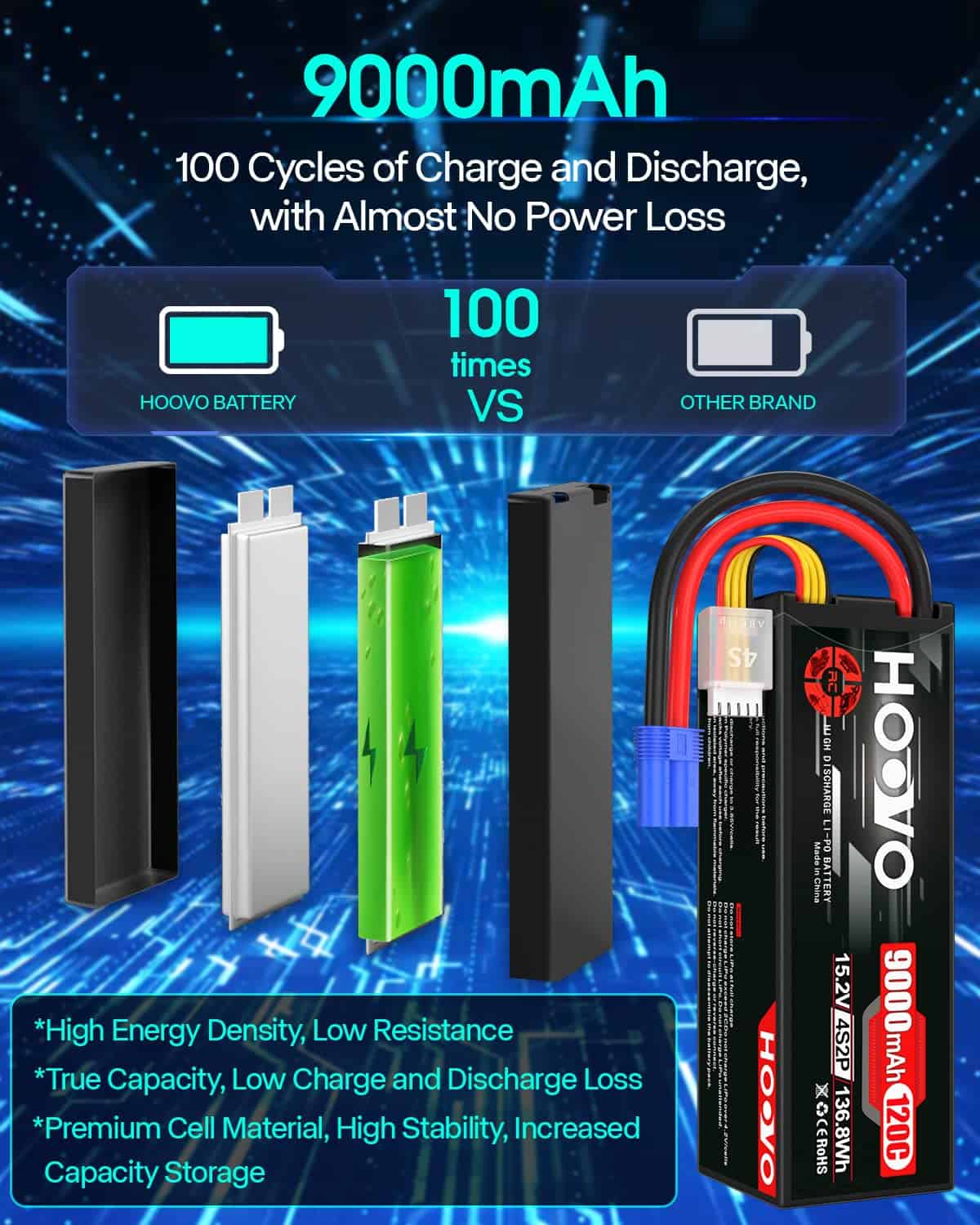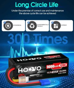 HOOVO 4S Lipo Battery 15.2V 9000mAh 120C RC Battery High Voltage Hard Case EC5 Plug Compatible for RC Cars Boats Trucks Buggies Drones RC Vehicles 2 Pack