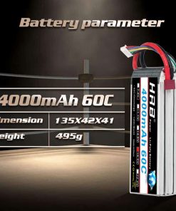 Marca: HRB Material: polímero de litio Capacidad: 4000mAh Celdas: 5s Tasa de descarga continua: 60C Voltaje por paquete: 18.5V Voltaje máximo por paquete: 21.0V Voltaje por celda: 3.7V Voltaje máximo por celda: 4.2V Conector de carga: JST-XH Conector de descarga: enchufe Deans T Cable de silicona: 12awg Tasa de carga sugerida: 1C Cargador sugerido: cargador de equilibrio Dimensión: 135x42x44mm( 0-3mm)/5.31 1.65 1.73inch Peso: 521 2g / 18.38oz Resumen HRB es la primera marca de batería en el mundo que se enfoca en suministrar energía para drones, UAV, UAS y productos FPV. Dedicándose a proporcionar una mejor experiencia de vuelo. HRB ha estado poniendo continuamente grandes esfuerzos en la investigación y desarrollo de tecnología y ahora se ha convertido en la marca de batería UAV más famosa y profesional del mundo. Características 1. Materiales superiores de polímero de litio de Japón y Corea. 2. Tecnología de apilamiento automático, mejor rendimiento. 3. Progreso de emparejamiento estricto, excelente consistencia. 4. Densidad energética de hasta 200Wh/kg. 5. Vida útil larga (mínimo 150 veces). 6. Garantía de 1 año. Atención 1. Para la batería RC, solo si el voltaje y el enchufe coinciden, entonces encajará. 2. No sobrecargue más de 4.2V y no descargue por debajo de 3.7V. 3. No lo coloque junto a condiciones de alta temperatura. 4. No lo arroje al fuego y al agua. 5. Revise cuidadosamente la condición de la batería antes de usarla o cargarla. 6. Si la nueva batería no retiene una carga completa o pierde la carga muy rápidamente en poco tiempo, utilice un Cargador de Equilibrio para cargar y reciclar varias veces primero.