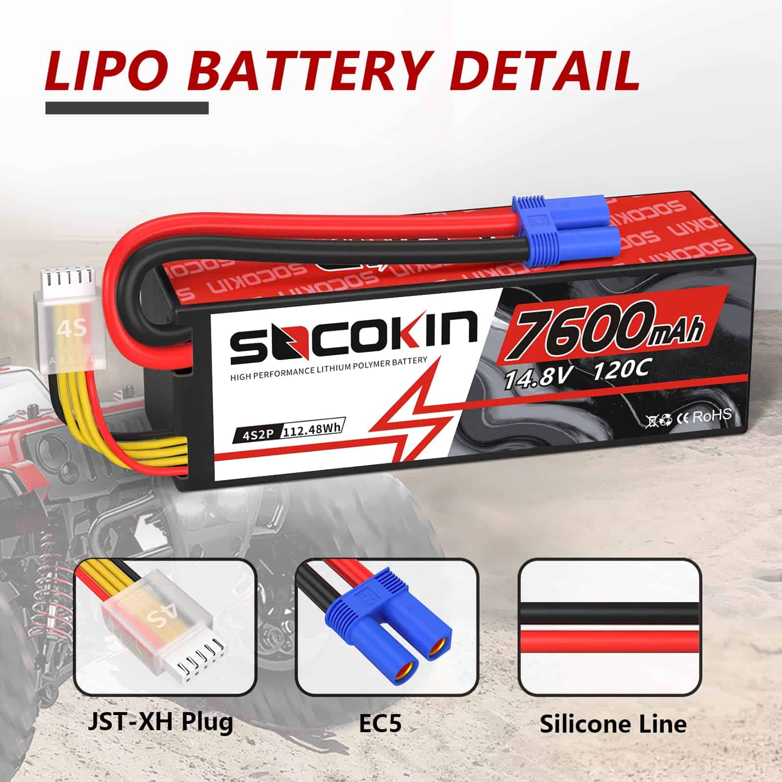 Batería Lipo Socokin 4S 7600mAh 14.8V 120C con Conector EC5
