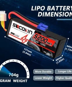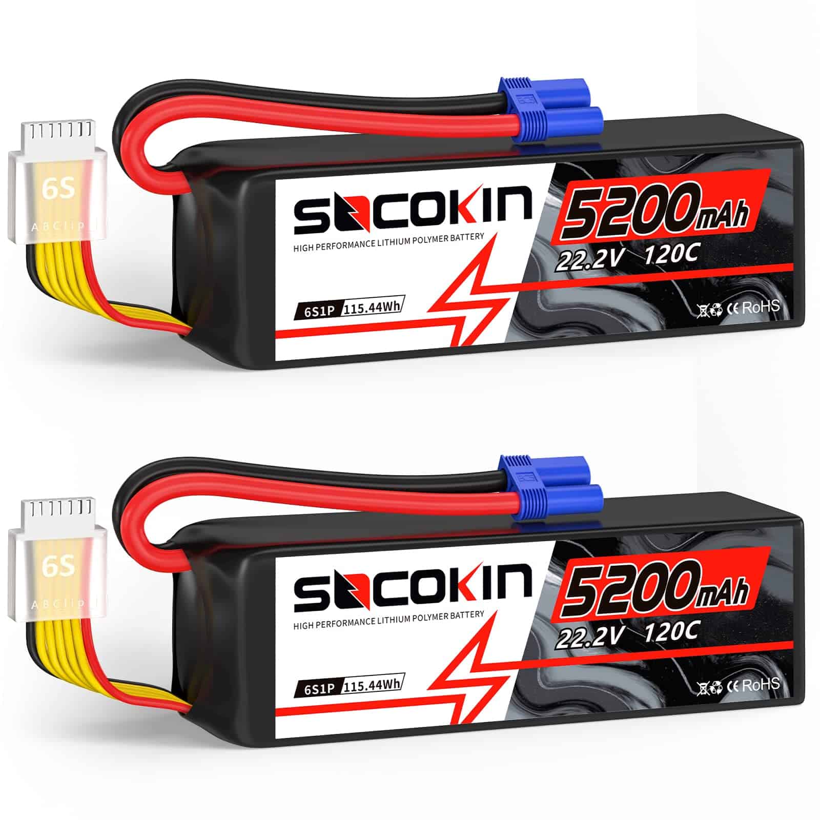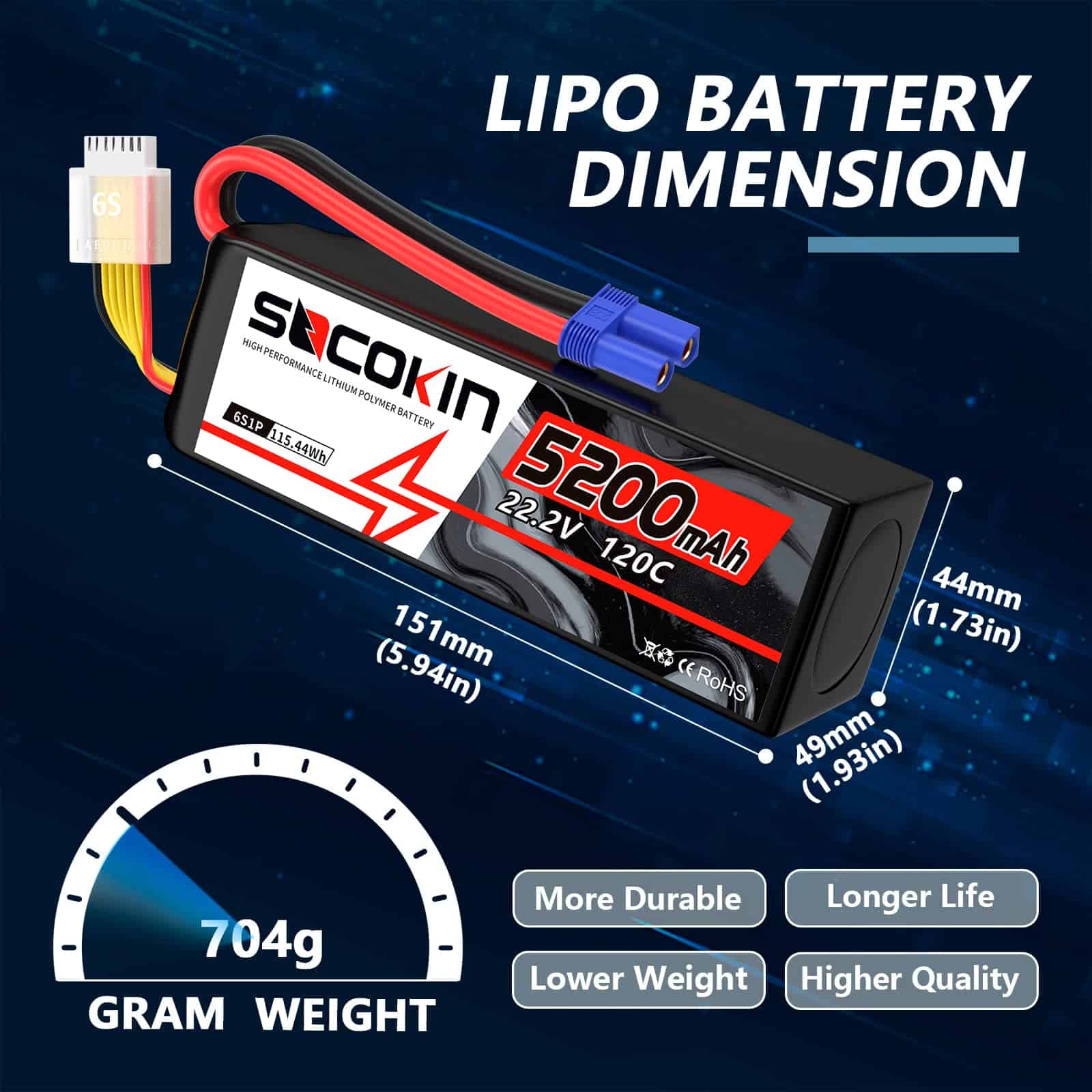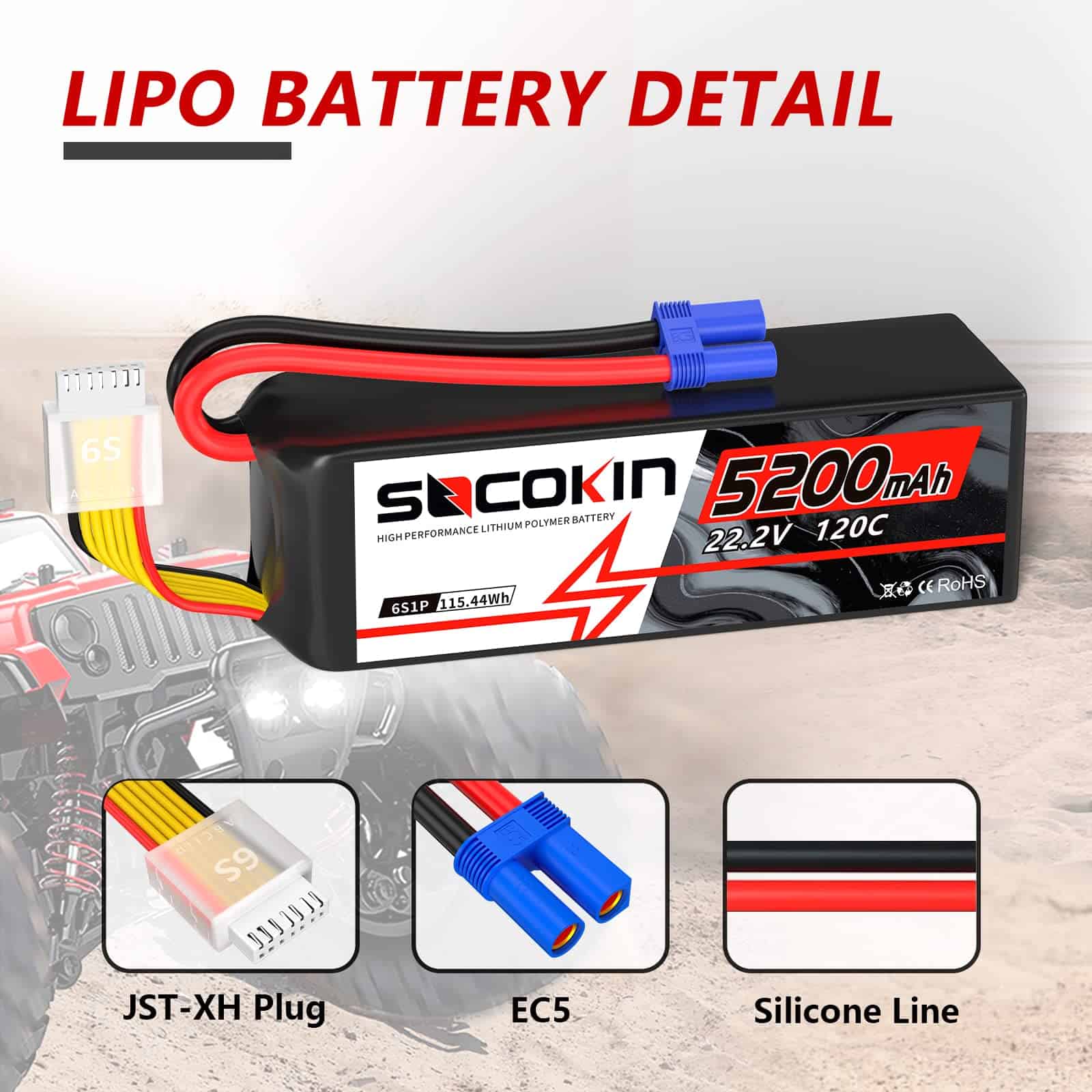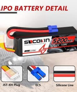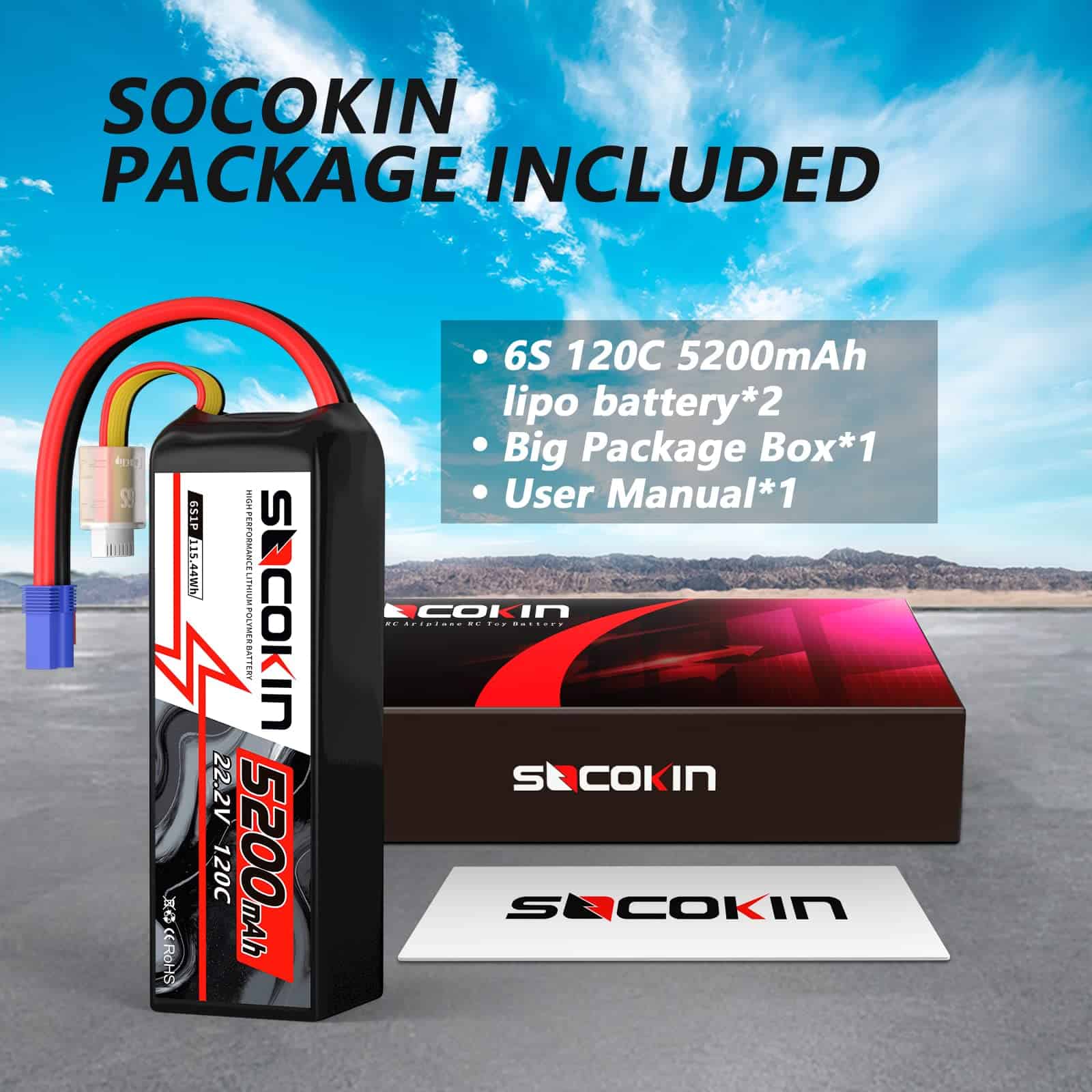 Batería Lipo Socokin 6S 22,2V 120C 5200mAh para RC, Estuche