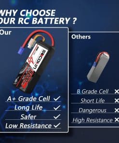 Detalles para la batería Lipo de estuche blando 6S Material: polímero de litio; Voltaje de la batería: 22,2V; Capacidad: 5200mAh; Descarga: 120C; Conector: EC5; Enchufe de carga balanceada: JST-XHR; Configuración: 6S1P. Productos con 1P ofrecen mayor calidad, mayor durabilidad y vida útil de la batería más larga. Dimensiones: 151x44x49mm/5.94×1.73×1.93 pulgadas (L x An x Al); Peso aproximado: 703.8g/24.8 oz/ud. Equipos aplicables: batería lipo de estuche blando 6S 120C 5200mAh con conector EC5 diseñada para aviones RC, vehículos RC, barcos RC. Aviso: No importa la marca de la batería, debe esperar a que se enfríe completamente antes de cargar, de lo contrario dañará seriamente la batería. Se recomienda que la corriente de carga sea la mitad a 2 veces la capacidad de la batería. Incluye: 2 baterías Lipo de estuche blando de 5200mAh 120C 22,2V 6S para RC con conector EC5. Si tiene alguna pregunta, por favor contáctenos.