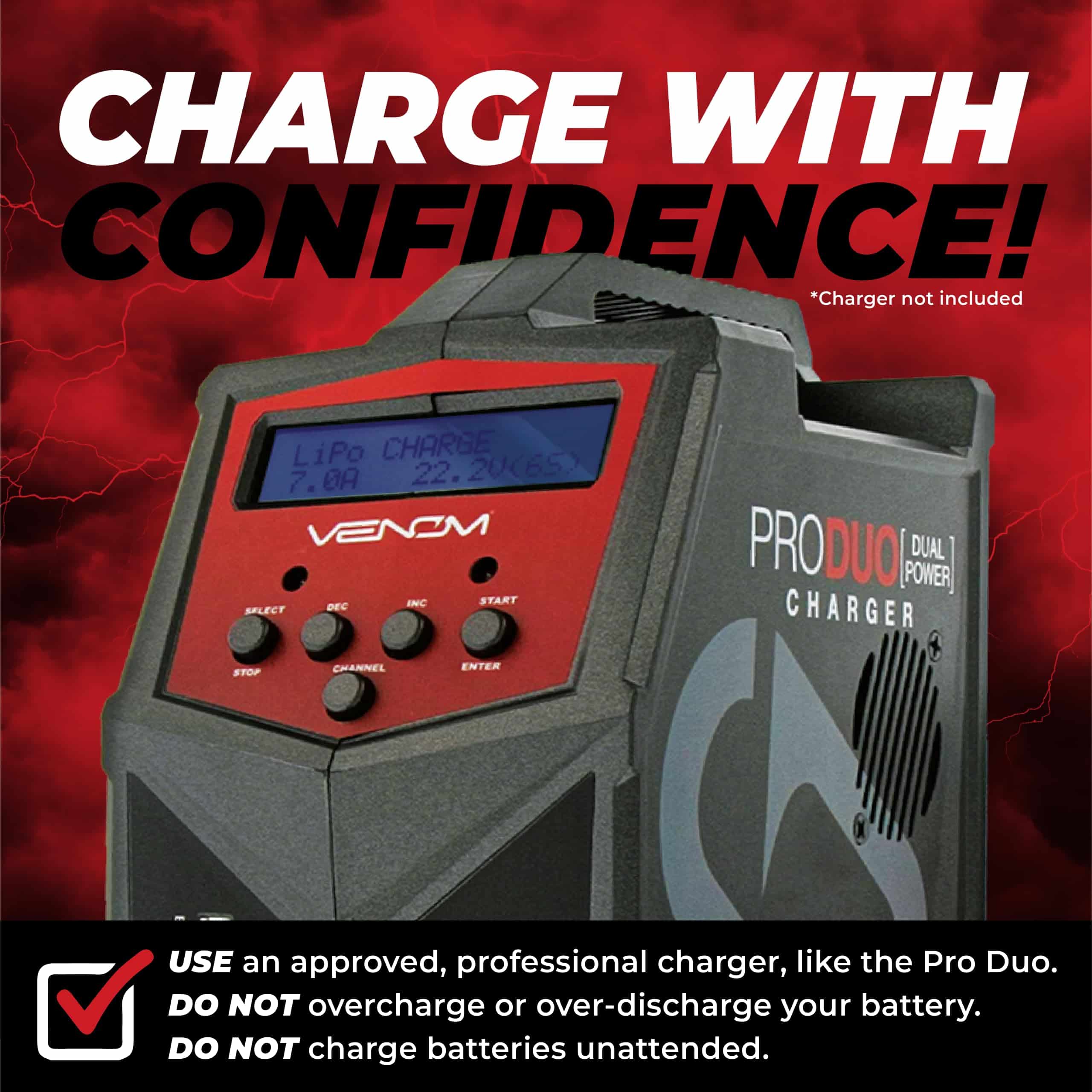 Disponible en una amplia gama de tamaños, capacidades y tasas de C, hay una batería Venom Drive que se adapta a la mayoría de las aplicaciones. Como líder de la industria en baterías y cargadores RC durante más de una década, Venom es un nombre en el que puedes confiar para obtener la potencia y rendimiento que demandas.