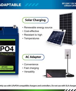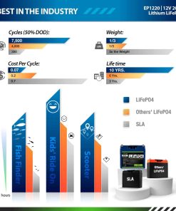 Añade valor y rendimiento a tus aplicaciones de RV, solar, marinas, overland y off-grid con la batería de ciclo profundo de litio LiFePO4 de ExpertPower. Con una duración de hasta 10 años y de 2500 a 7000 ciclos de vida, nuestra batería proporciona una fuente de energía confiable que supera a otras en la industria.