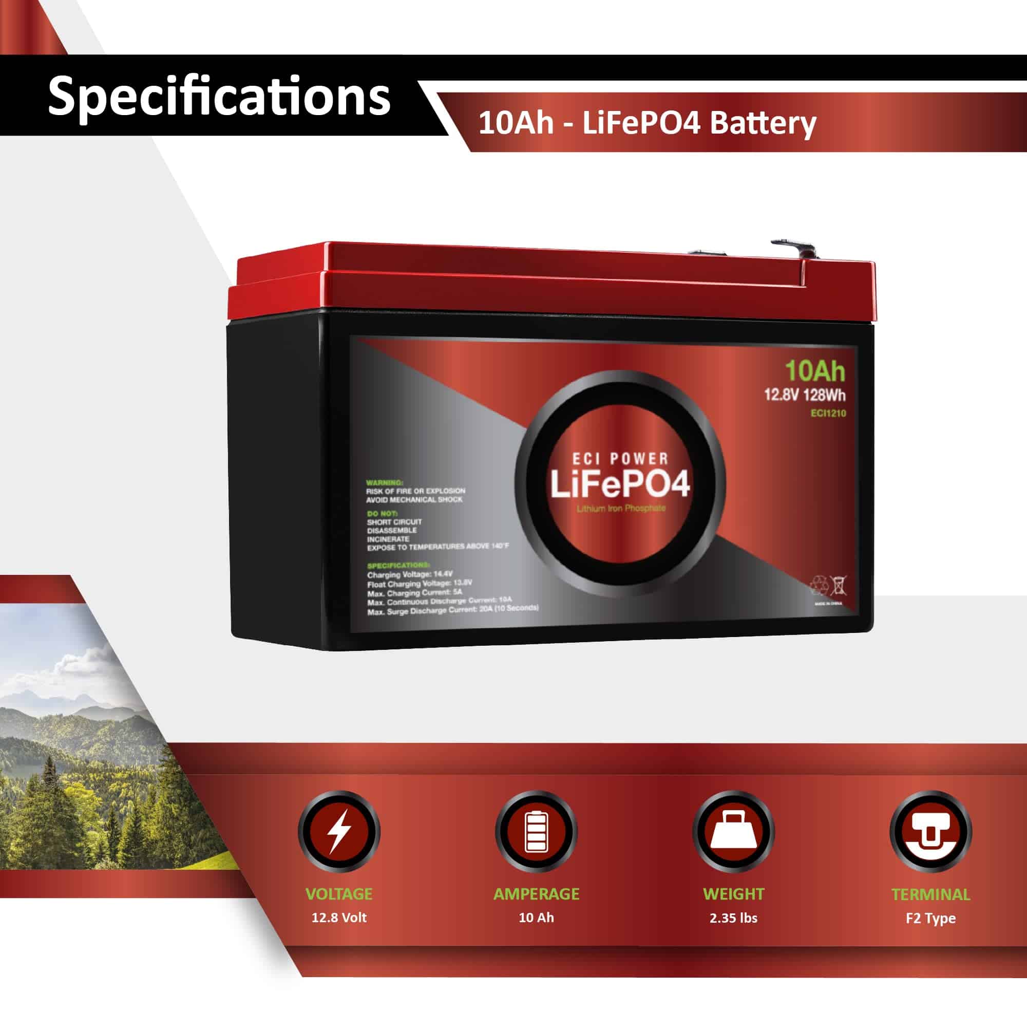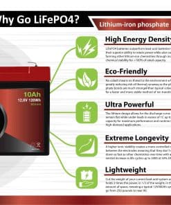 La batería recargable ECI Power de ciclo profundo de litio LiFePO4 de 12V 10Ah es la solución perfecta para diversas aplicaciones como RV, solar, marinas, overland y fuera de la red. Con una duración de 10 años y una cantidad impresionante de 2000-5000 ciclos de vida, esta batería ofrece un rendimiento incomparable a un precio asequible. La tecnología de vanguardia utilizada en la batería garantiza un rendimiento excepcional que supera a las baterías más caras del mercado. Respaldada por celdas de grado A listadas en UL1642 y apoyada por nuestro equipo de ingeniería y posventa que abarca Norteamérica y más allá desde 1987, la calidad está garantizada. Además, la batería cuenta con un sistema de gestión de baterías (BMS) integrado que proporciona protección completa contra varios peligros como la sobrecarga, la descarga profunda y el sobrecalentamiento, al tiempo que garantiza una tasa de autodescarga baja para hasta 1 año de almacenamiento libre de mantenimiento. Disfruta de la longevidad y el rendimiento excepcional de la batería LiFePO4 de ECI Power.