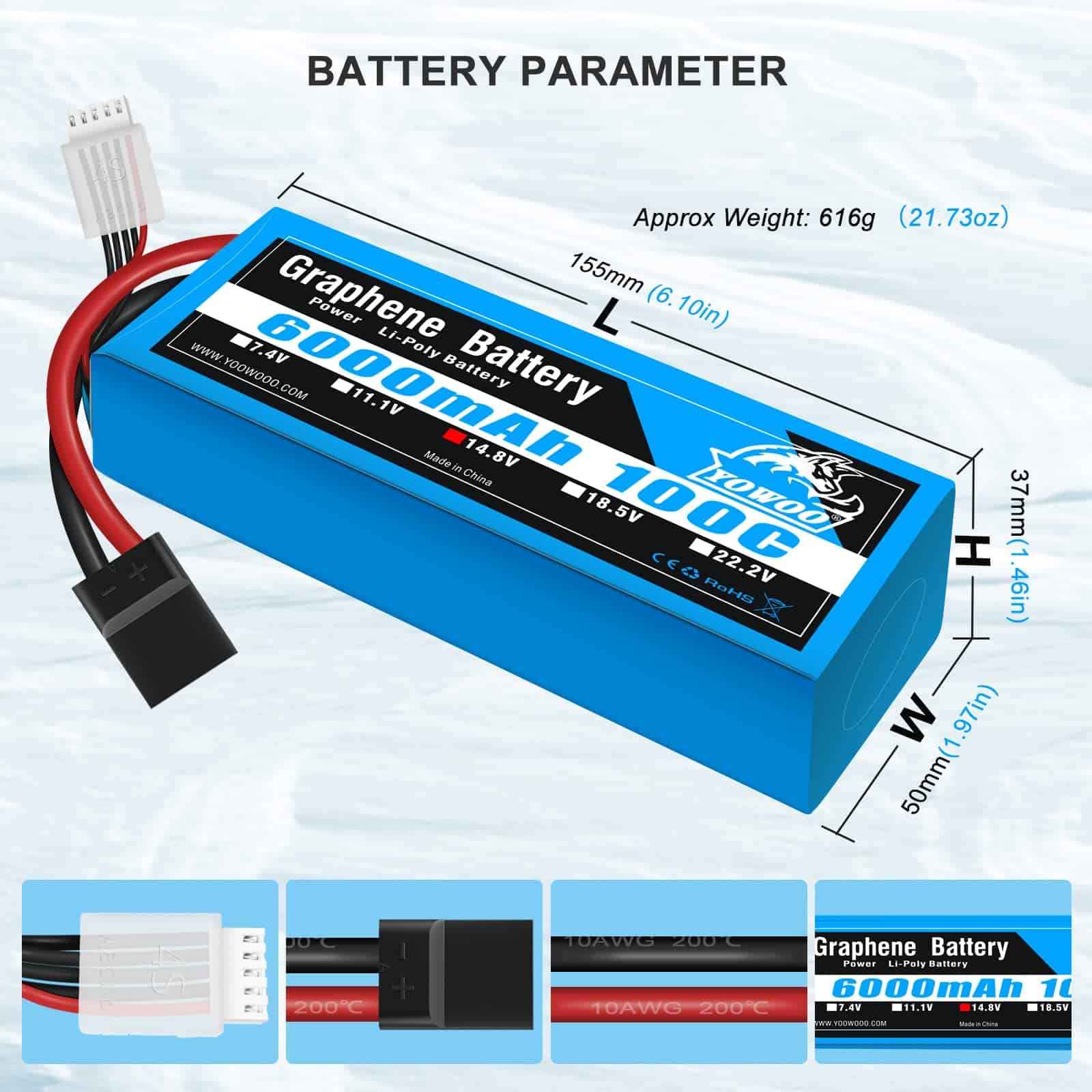 Batería YOWOO de Grafeno 4S Lipo 6000mAh 14.8V 100C