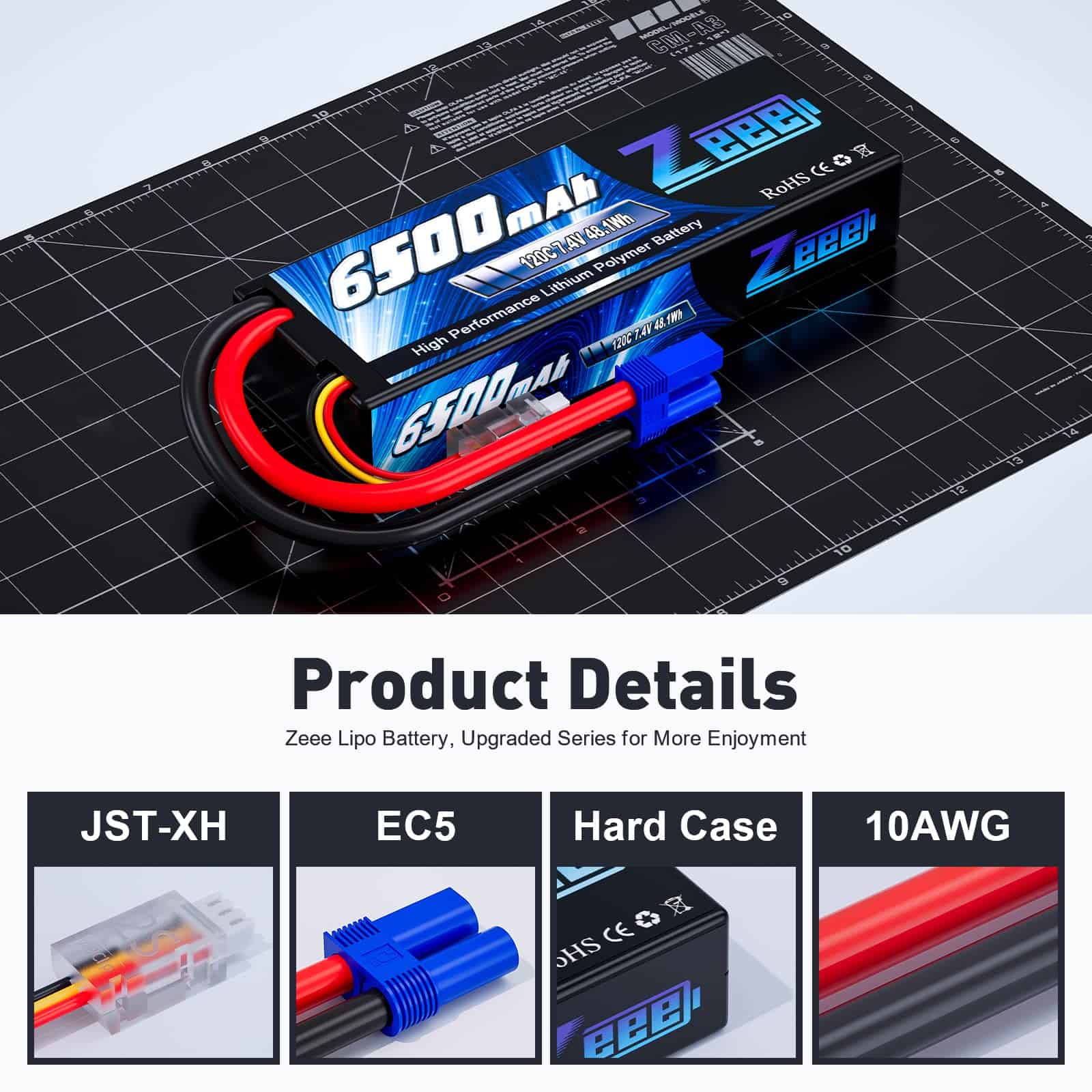 Batería Zeee 2S Lipo 6500mAh 7.4V 120C Estuche Rígido