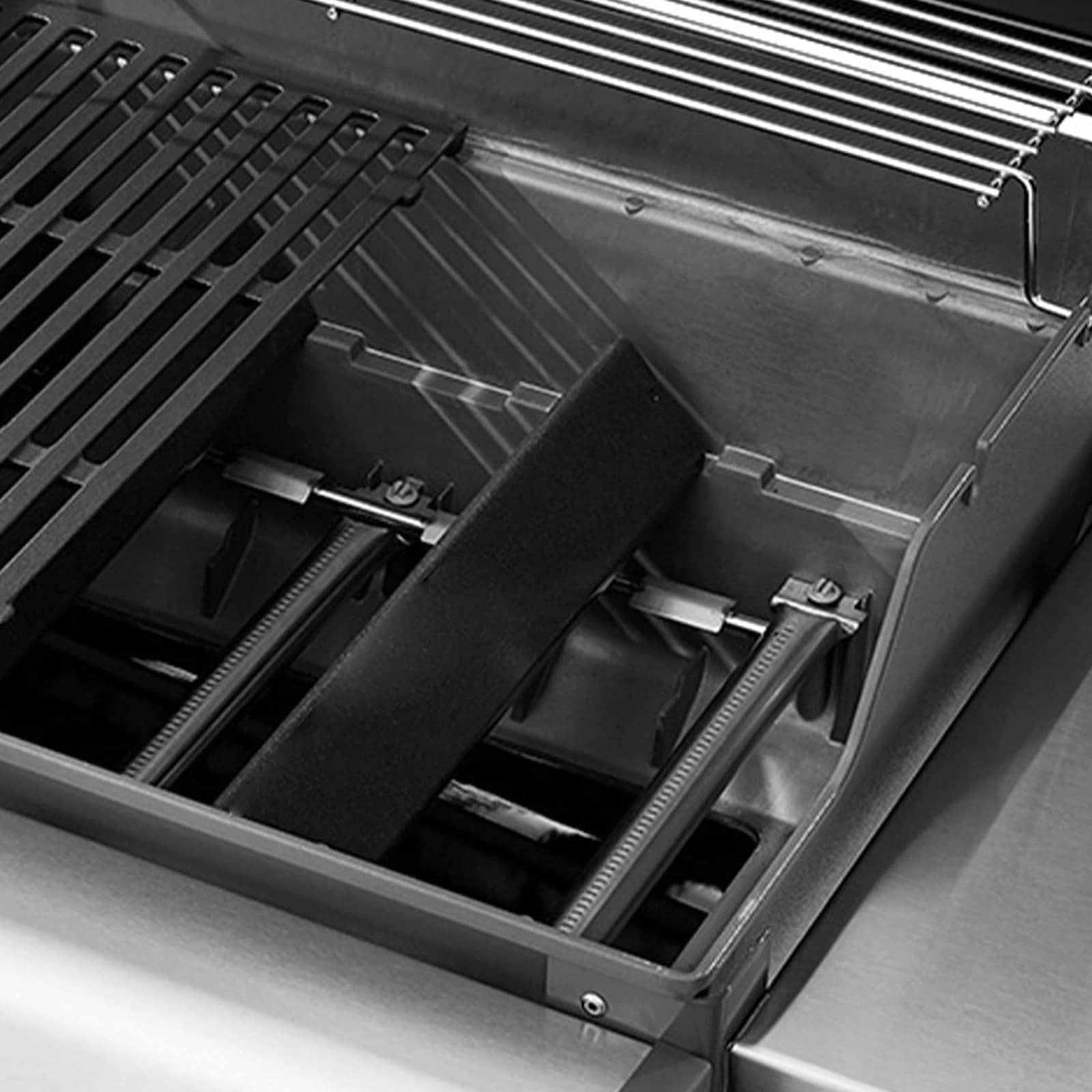2. Dimensiones de las Barras Flavorizantes Cada barra mide 15.3″ L x 3.5″ A x 2.5″ A, se ajusta sin modificación. Material: acero esmaltado de porcelana mejorado.