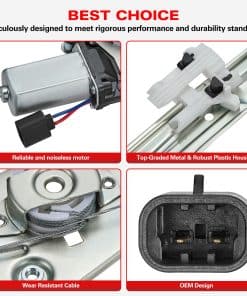 1. Calidad Premium Este regulador de ventana y motor presenta mejoras significativas sobre la pieza original de fábrica, proporcionando un nivel superior de confiabilidad. Incorpora resortes de tensión para resistir eficazmente el atascamiento del carrete de cable causado por el uso prolongado. Además, está equipado con guías de cable avanzadas para eliminar la alta tensión del cable y reducir el estrés del cable.