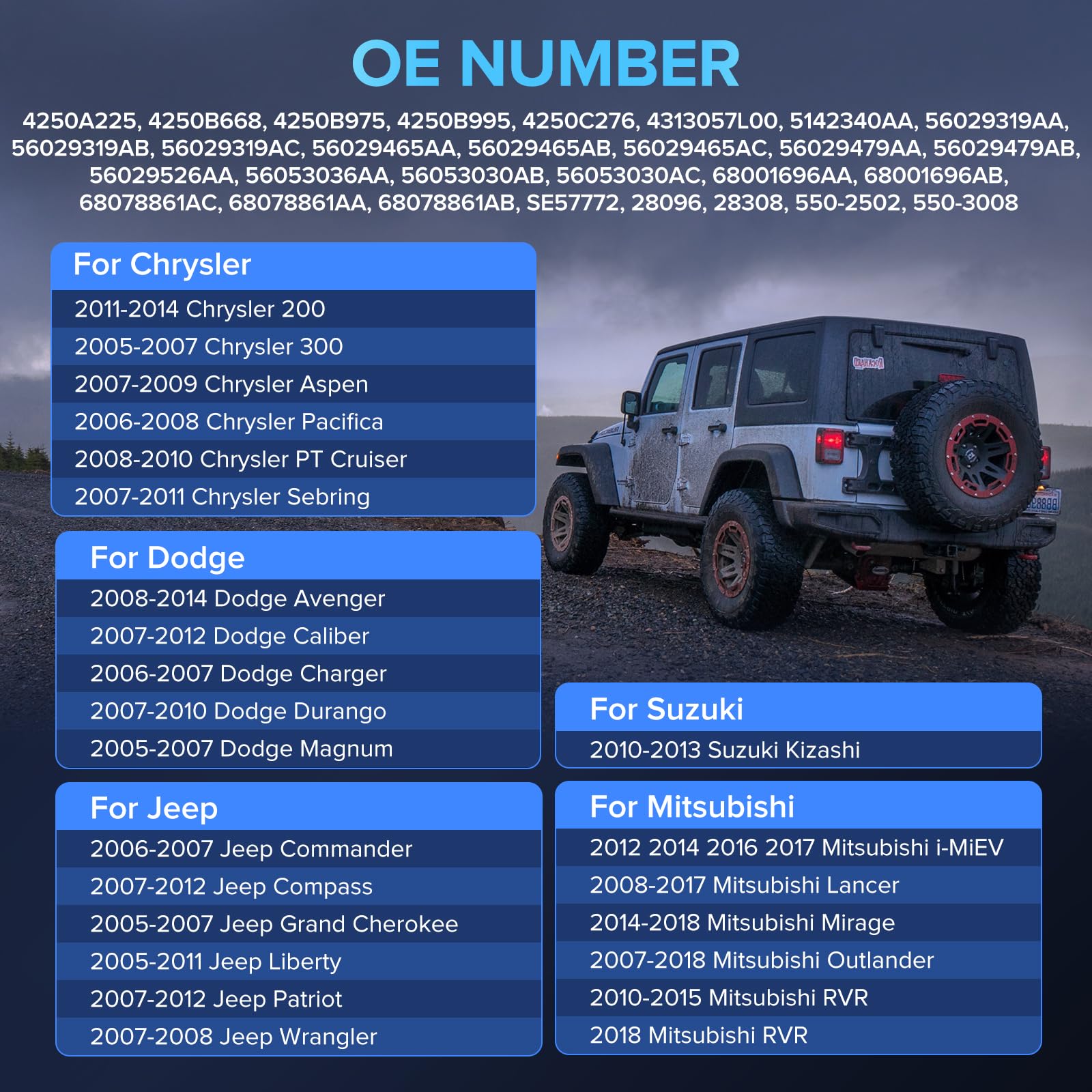 4250A225, 4250B668, 4250B975, 4250B995, 4250C276, 4313057L00, 5142340AA, 56029319AA, 56029319AB, 56029319AC, 56029465AA, 56029465AB, 56029465AC, 56029479AA, 56029479AB, 56029526AA, 56053036AA, 56053030AB, 56053030AC, 68001696AA, 68001696AB, 68078861AC, 68078861AA, 68078861AB, SE57772, 28096, 28308, 550-2502, 550-3008.