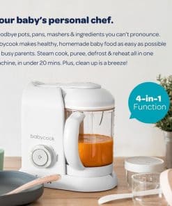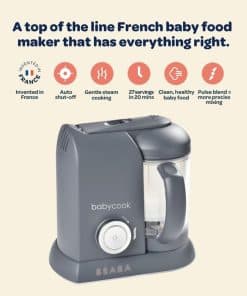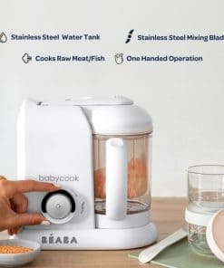 BEABA Babycook Solo es un procesador de alimentos para bebés todo en uno de primera calidad que permite cocinar al vapor, mezclar, descongelar y recalentar de forma saludable y conveniente. Con una capacidad de 798 ml en la canasta de vapor, puede hacer hasta 27 porciones de comida fresca para bebés en solo 20 minutos en un ciclo de cocción. La canasta de vapor elevada de Babycook asegura una cocción al vapor verdadera, lo que resulta en una pérdida mínima de nutrientes, a diferencia de otros competidores que no elevan los alimentos sobre el agua. El agua sobrante se puede utilizar como caldo de puré para ayudar a controlar la consistencia y textura del puré al mezclar, lo que resulta en la preparación de deliciosos y saludables alimentos para bebés. La operación de una sola máquina de BEABA Babycook hace que preparar comidas para bebés sea rápida, fácil y libre de complicaciones. Además, el diseño de seguridad con bloqueo de Babycook garantiza que no se encienda a menos que todos los componentes estén correctamente en su lugar, proporcionando una tranquilidad adicional a los padres ocupados. Con materiales seguros para alimentos de alta calidad y múltiples certificaciones de seguridad a nivel mundial, Babycook es una elección confiable para la preparación segura de alimentos para bebés. ¡Haga de la alimentación de su bebé una experiencia saludable y sin complicaciones con BEABA Babycook Solo!