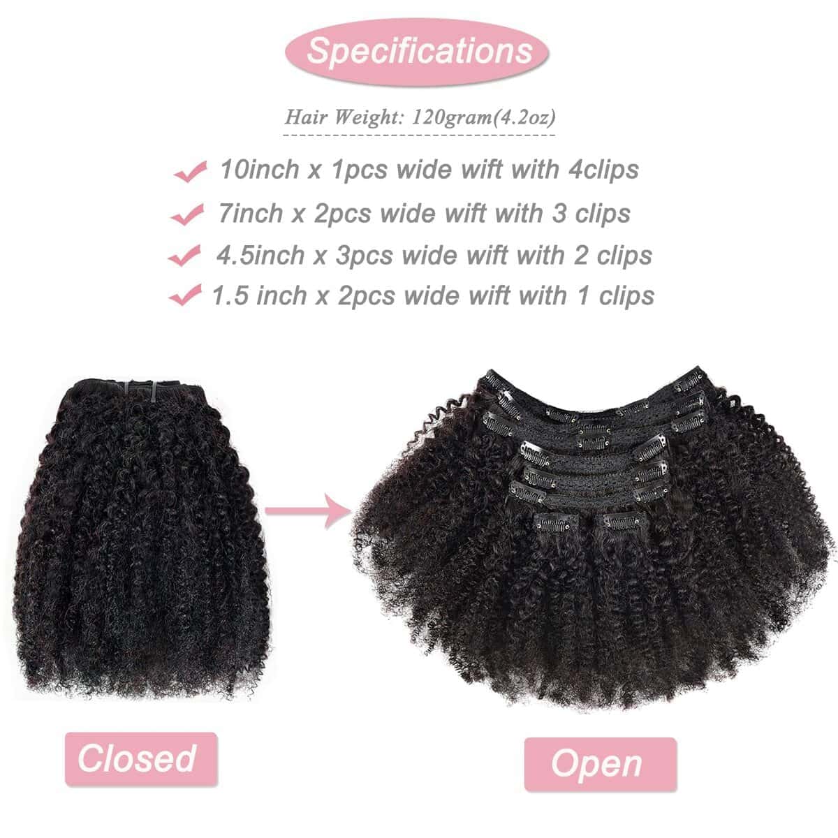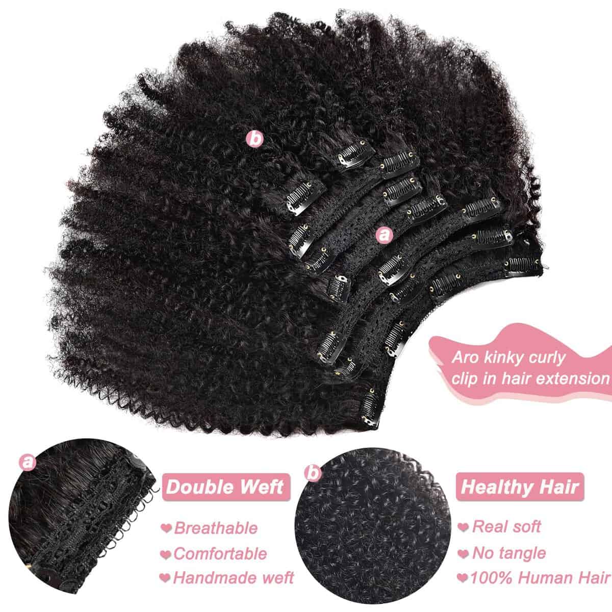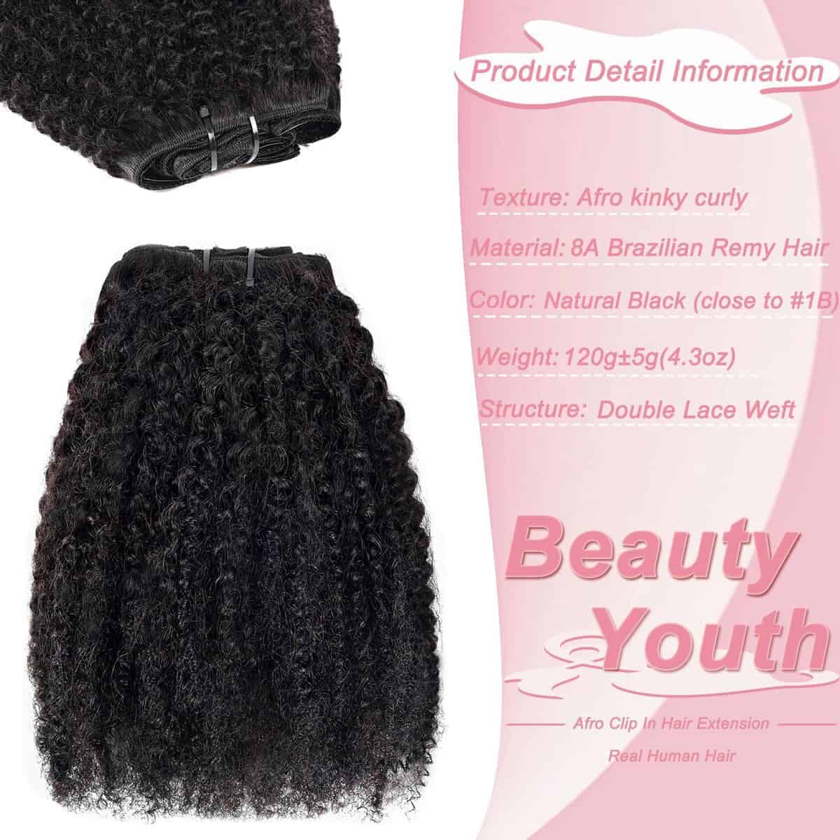 Beauty Youth Extensiones de Cabello Afro Kinky Curly Clip