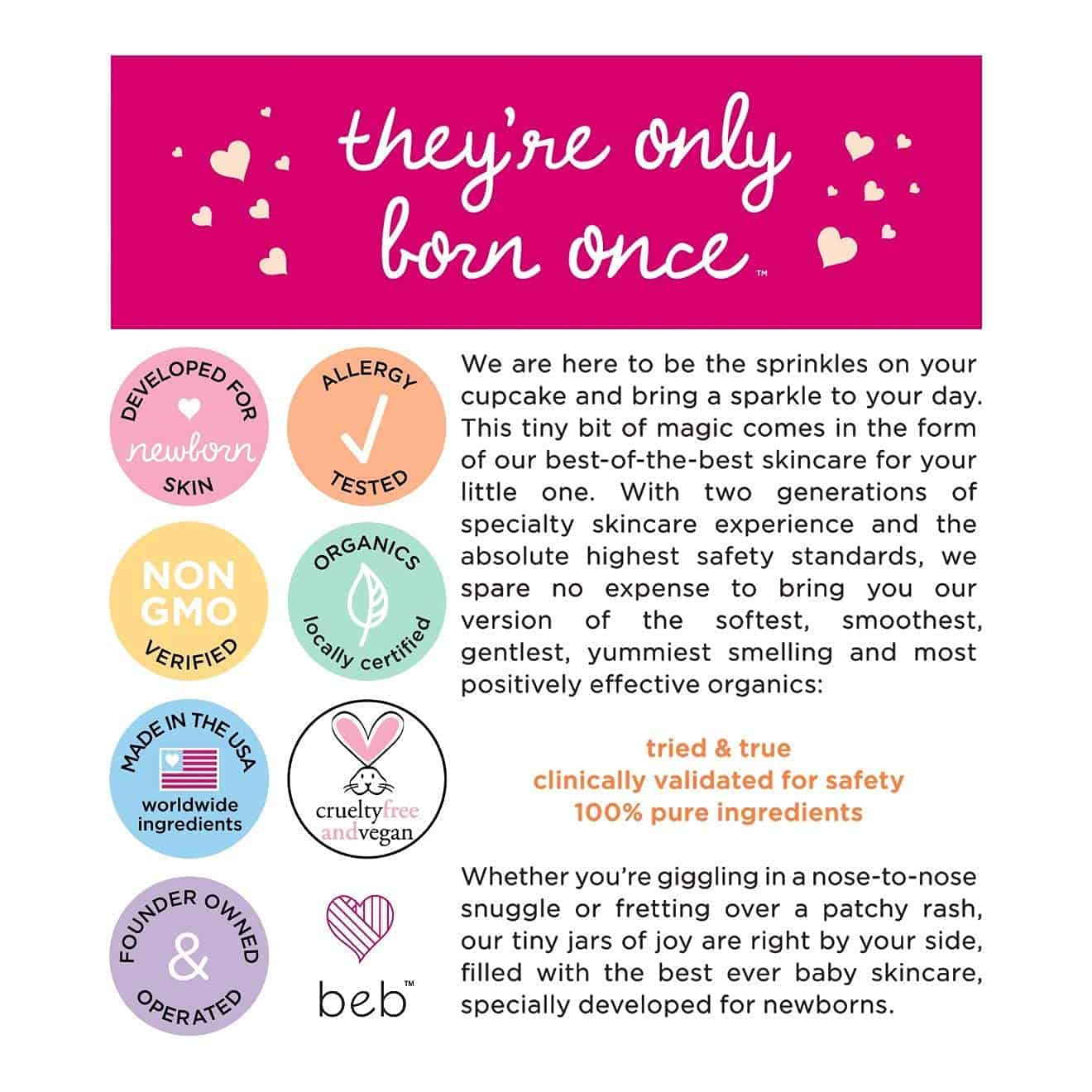 THE BEB ORGANIC MISSION / BEB Organic nació del descubrimiento de que el toque tierno brinda salud, curación y alegría a los prematuros y recién nacidos. Su misión es ofrecer educación y capacitación a las familias y profesionales de la salud. Al crear productos puros, orgánicos y orientados a la salud, BEB Organic ayuda a los padres a dar lo mejor desde el primer contacto. HOLISTIC BABY SKINCARE TREATMENT Para obtener los mejores resultados, siga la rutina completa de BEB Organic: Limpie con BEB Organic Bubbly Wash, Trate con BEB Organic Healing Gel, Hidrate con BEB Silky Cream, Selle la humedad con BEB Organic Nourishing Oil, Proteja con BEB Organic Diaper Balm. CALIDAD EN LA QUE PUEDE CONFIAR Cada producto se mezcla, fabrica y empaqueta en una instalación orgánica certificada en los Estados Unidos. Las materias primas se obtienen de todo el mundo para garantizar ingredientes no transgénicos de la más alta calidad para usted y su bebé, todos ellos de alta calificación por el Grupo de Trabajo Ambiental (EWG). BEB Organic prueba el gluten y las alergias en cada lote, y nunca usa fragancias sintéticas, productos de origen animal o aceite de palma. Los productos nunca se prueban en animales. EDUCACIÓN Y EMPODERAMIENTO BEB Organic hace más que ofrecer productos de calidad premium para familias. Educa a los profesionales de la salud y a los nuevos padres sobre las necesidades únicas de los prematuros y recién nacidos, y ofrece recursos útiles a medida que los padres abrazan la llegada especial de su pequeño.