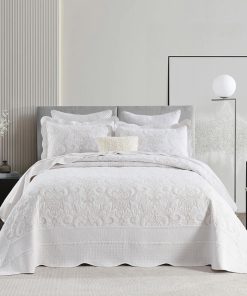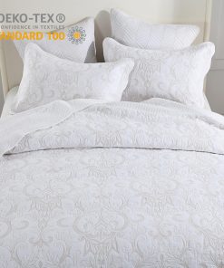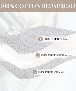 Este colchazole de algodón extragrande 100% de lujo de Bedduvit es perfecto para aquellos que buscan ropa de cama suave, transpirable y amigable con la piel. El tejido y el relleno están hechos de algodón de primera calidad, lo que lo convierte en una opción ideal para personas con piel sensible o que tienden a sudar por la noche. El colcha es de tamaño extragrande, con medidas de 120″x120″, perfecto para adaptarse a colchones estándar, colchones gruesos y camas ajustables divididas. Además, su diseño exquisito con elegantes bordados damascos beige en un fondo blanco le da un toque de sofisticación a cualquier decoración de dormitorio. La colcha de algodón es versátil y se puede utilizar como colcha extragrande, cubrecamas, colcha, manta de cama o edredón ligero. En verano, funciona como una colcha, mientras que en invierno se puede combinar con una manta o edredón para mayor calidez. Además, este juego de ropa de cama blanco está certificado según el estándar OEKO-TEX 100, asegurando que los materiales son seguros y libres de sustancias nocivas. Se puede lavar a máquina para facilitar el cuidado, lavar suavemente en agua fría y secar a baja temperatura. ¡No dude en adquirir este hermoso juego de colcha que es perfecto para todas las estaciones!
