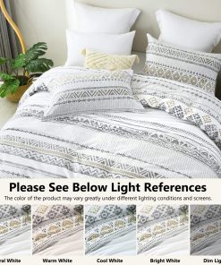 Esta funda de edredón boho queen crea un ambiente cálido y acogedor en tu dormitorio, aportando un toque de estilo bohemio a tu espacio íntimo. El diseño a rayas boho agrega un toque de sutil elegancia, permitiéndote jugar con la decoración y refrescar tu habitación fácilmente. Hecha de 100% algodón, esta funda de edredón garantiza suavidad, comodidad y seguridad para ti y tu familia. Con ocho lazos en las esquinas para evitar que el relleno del edredón se desplace, y un cierre de cremallera oculto para una fácil colocación y remoción, esta funda de edredón queen te brinda tranquilidad y durabilidad. Certificada por el ESTÁNDAR 100 de OEKO-TEX, puedes estar seguro de que esta funda de edredón es segura y amigable con el medio ambiente. El juego incluye una funda de edredón boho queen y dos fundas de almohada a juego, perfecto para completar tu conjunto de ropa de cama boho chic. ¡Eleva la decoración de tu dormitorio con esta elegante y cómoda funda de edredón!