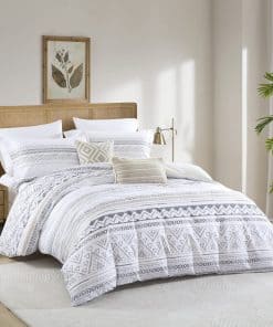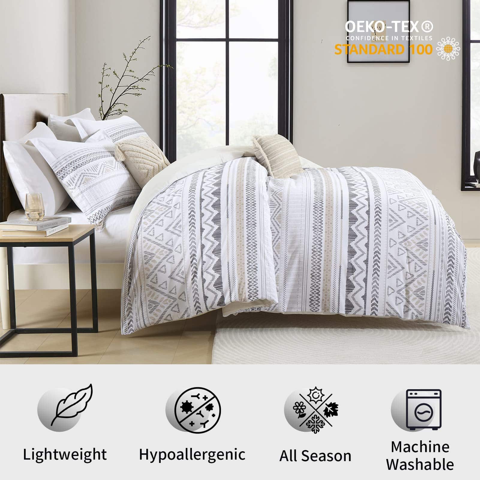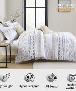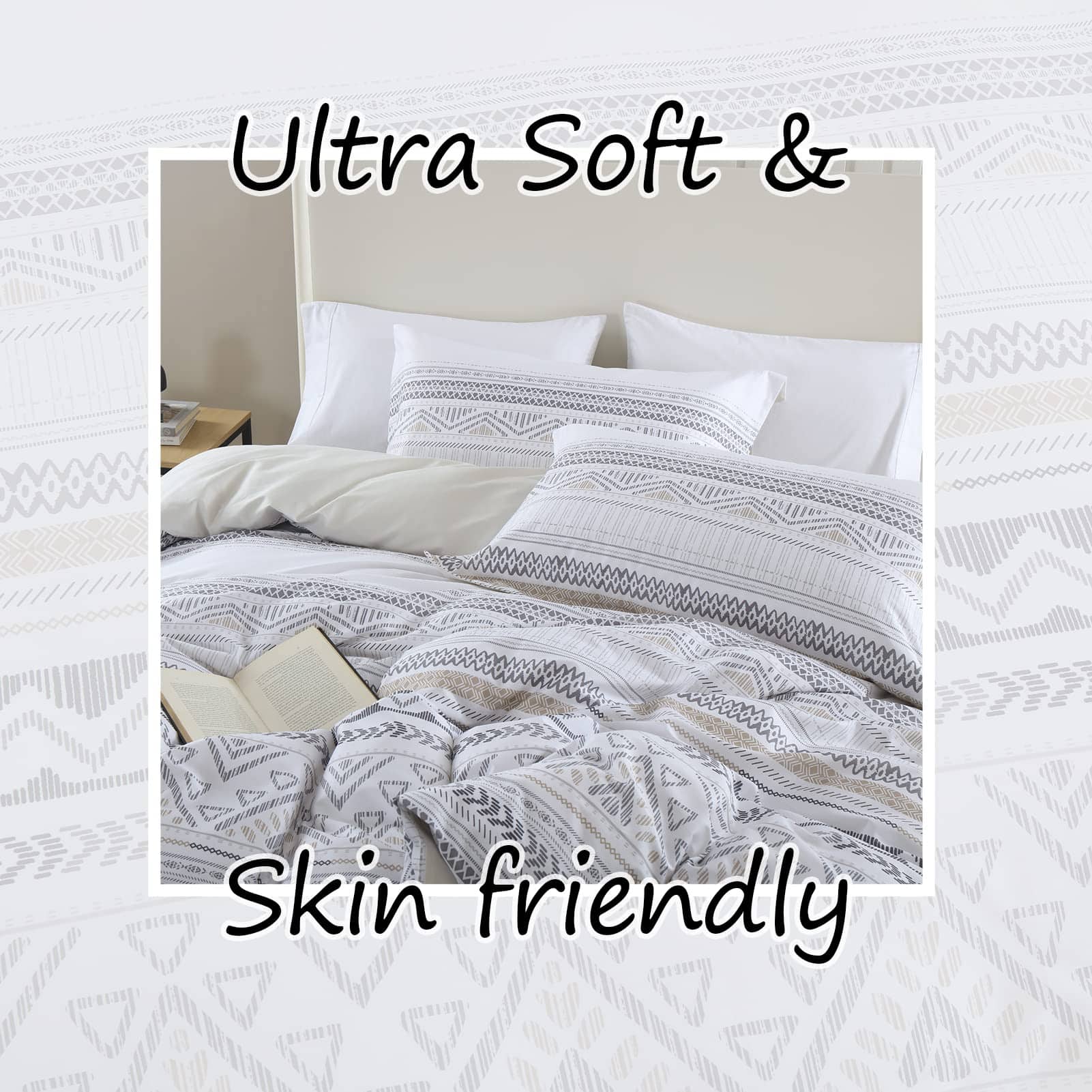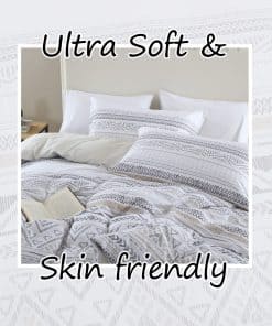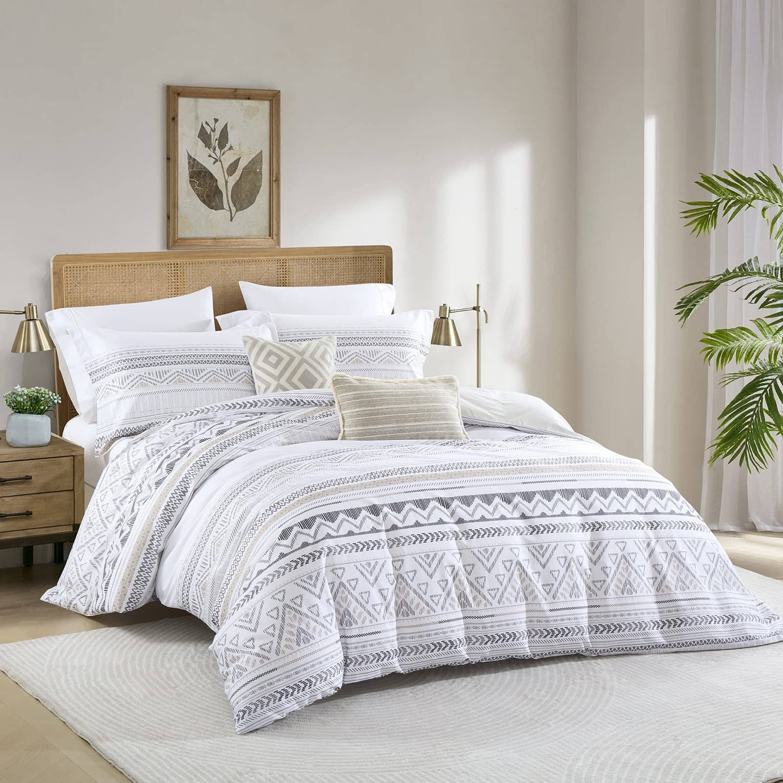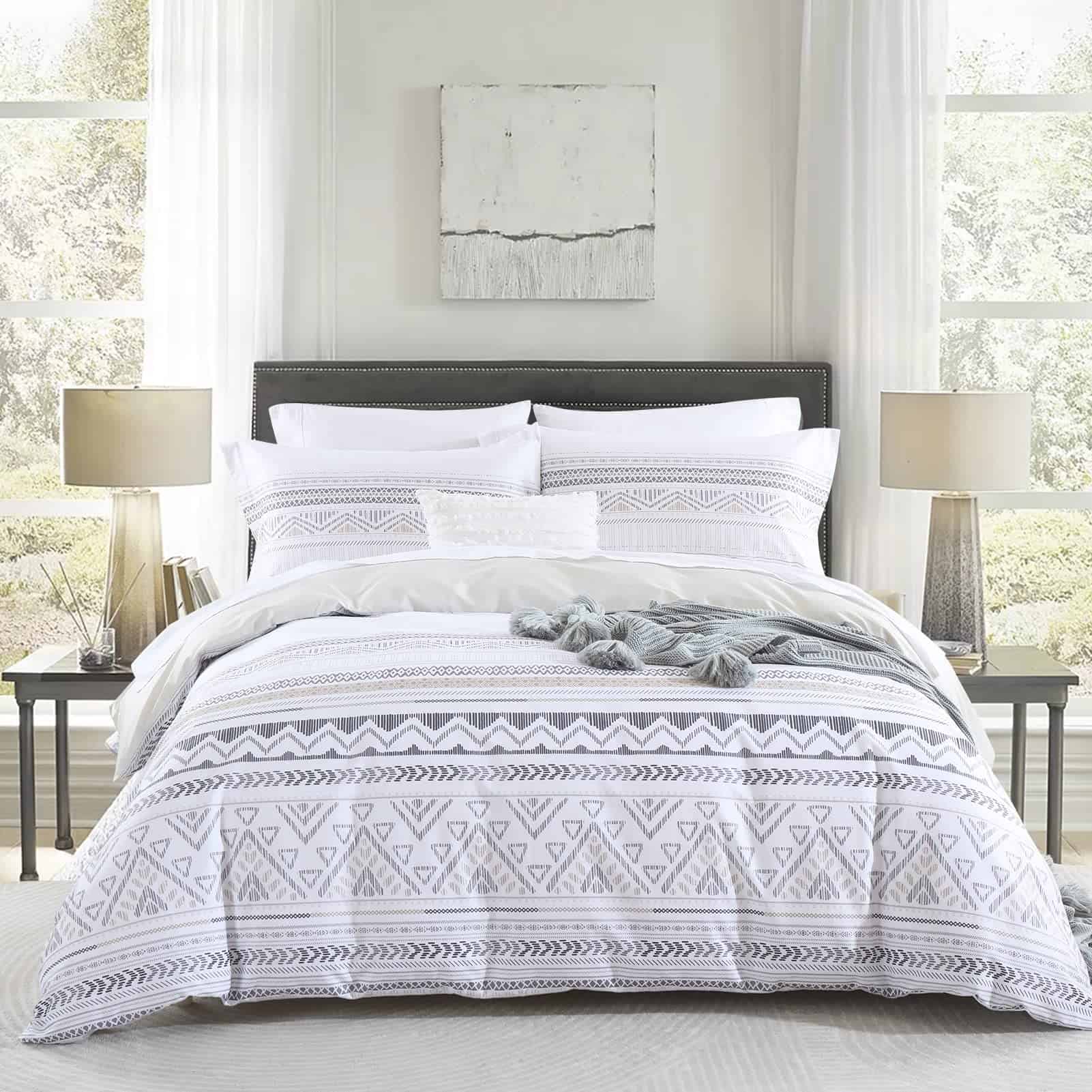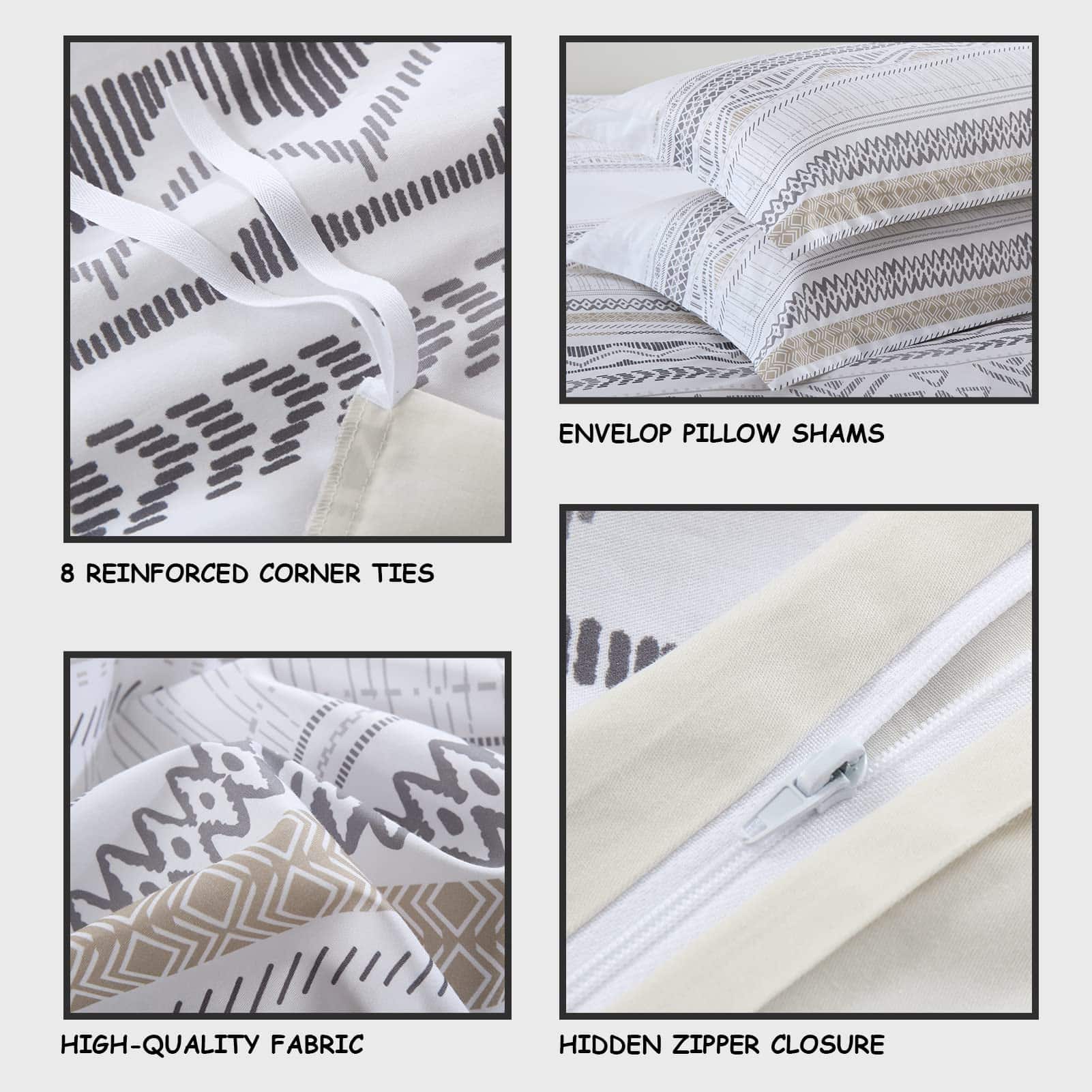 Bedduvit Juego de Funda nórdica Boho Queen – -Gris/Blanco/Ne