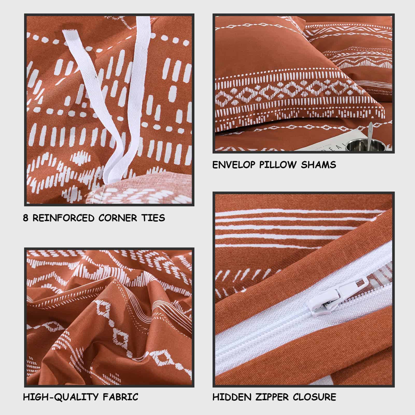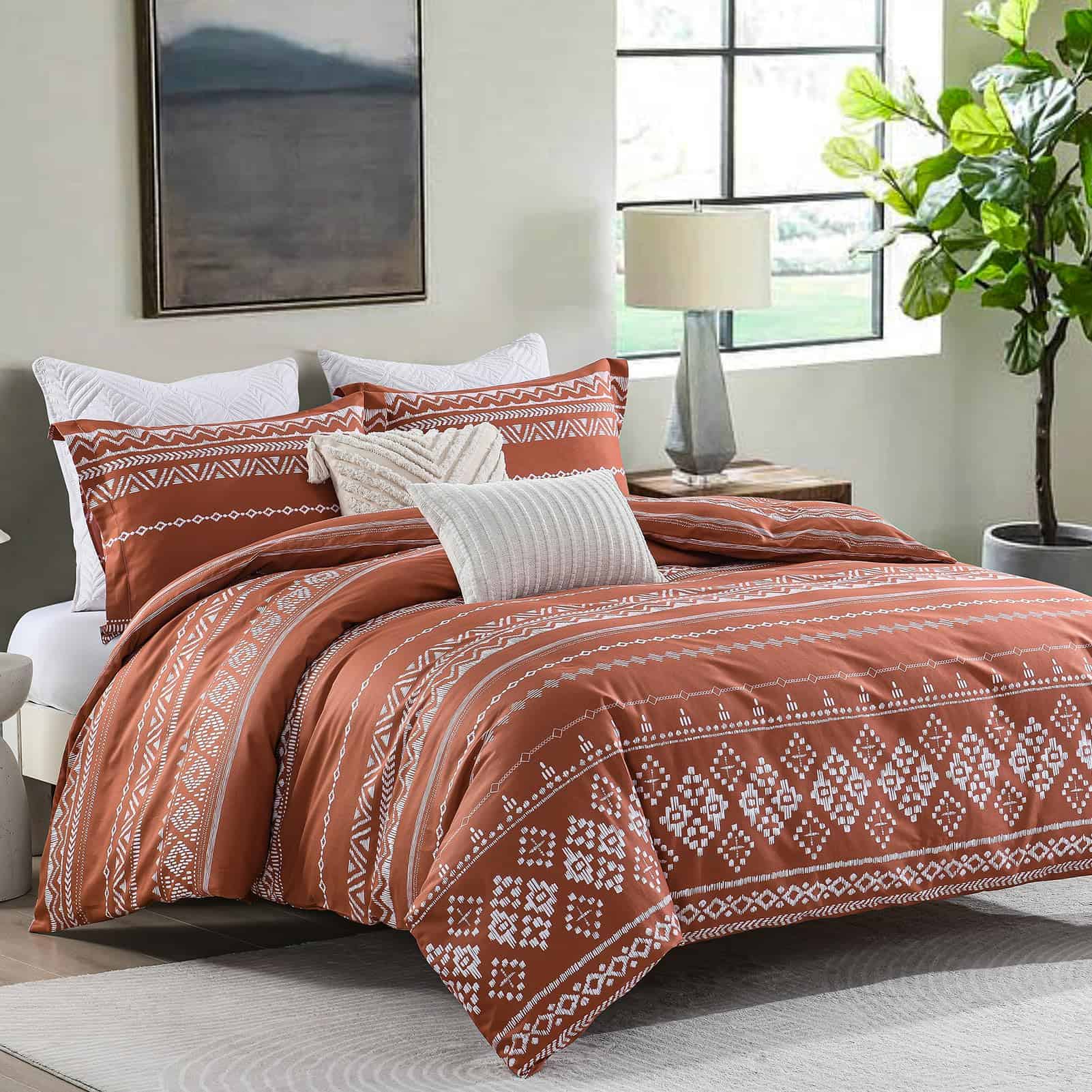 Bedduvit Juego de Funda Nórdica Boho Queen – -Naranja Quemad