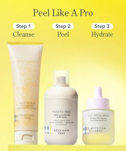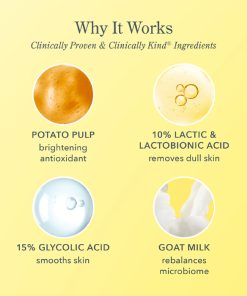 Beekman 1802 Potato Peel es un peeling facial suave con pulpa de papa, ácido láctico y lactobiónico al 10%, y ácido glicólico al 15%. Clínicamente probado para suavizar la textura de la piel, minimizar las manchas oscuras y revelar una piel más joven en solo 2 semanas. La pulpa de papa destilada enriquecida es rica en vitaminas B6 y C para aclarar visiblemente la piel. El ácido láctico y lactobiónico al 10% exfolian suavemente y eliminan la piel opaca. El ácido glicólico al 15% resurge rápidamente para una piel más joven.