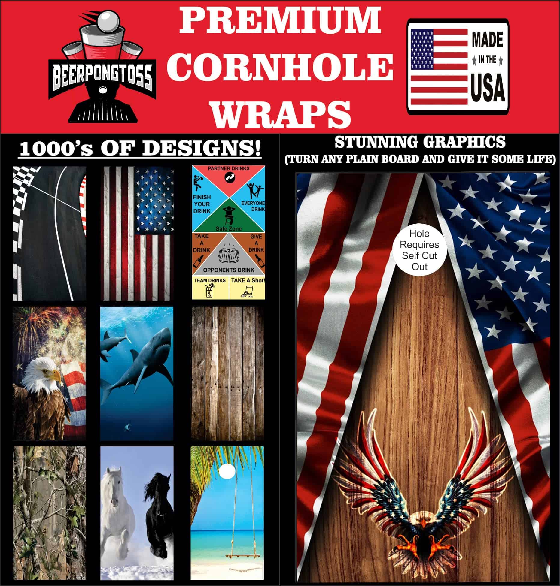 Beerpongtoss American Eagle Cornhole Board Wraps,