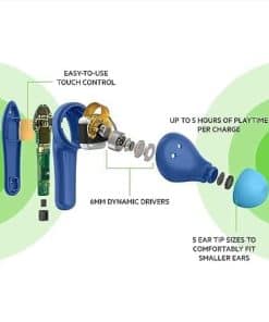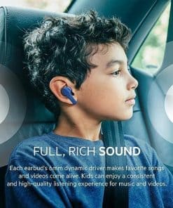 Los auriculares inalámbricos Belkin SoundForm Nano son los auriculares Bluetooth perfectos para niños. Nuestros auriculares Bluetooth están diseñados para acompañar a tus hijos en clases virtuales, mientras ven videos educativos, o en un largo viaje para que puedan escuchar cómodamente música. Los auriculares SoundForm Nano ofrecen opciones de color divertidas que los niños amarán. Las puntas de silicona suave están diseñadas para adaptarse a los oídos jóvenes y vienen en 5 tamaños, incluyendo XXS. A diferencia de los auriculares Bluetooth y auriculares inalámbricos para adultos, los auriculares SoundForm Nano son pequeños y ligeros, proporcionando un confort superior sin sacrificar la calidad de audio. Obtén una carga completa de 24 horas para el estuche y los auriculares en solo 2 horas con el cable de carga micro-USB incluido. Los niños pueden volver a escuchar rápidamente, solo 10 minutos de carga proporcionan una hora de reproducción. Los niños no necesitarán ayuda para configurar o usar sus auriculares Bluetooth gracias a los simples controles táctiles inalámbricos y sin botones para reproducir/pausar, controlar el volumen y emparejar por Bluetooth. Y los padres pueden estar tranquilos sabiendo que SoundForm Nano tiene un límite de volumen de 85 dB para mantener los niveles de volumen en un rango seguro. Los auriculares para niños Belkin SoundForm Nano ofrecen un audio cristalino para una comunicación ininterrumpida. Con un micrófono incorporado, los niños disfrutarán de una calidad de voz nítida y clara, para que la conversación fluya libremente e ininterrumpida ya sea en la escuela, en casa o mientras viajan, transmiten o juegan. El paquete incluye auriculares inalámbricos SoundForm Nano para niños, estuche de carga, cable de carga micro-USB, 5 pares de puntas de silicona para los oídos, Guía de inicio rápido. Compatible con iPhone y Android.