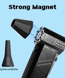 Soplador de aire comprimido BENJEN – Soplador de aire eléctrico de alto rendimiento con motor de hasta 130,000 rpm, presión de aire de más de 180 gramos y velocidades de viento máximas de más de 52 m/s (Tifón Súper 51.0 m/s). Este soplador de aire eléctrico es perfecto para eliminar la suciedad de los teclados o de las hendiduras de dispositivos electrónicos, haciendo que sea conveniente para su uso en el hogar, la oficina o el coche.