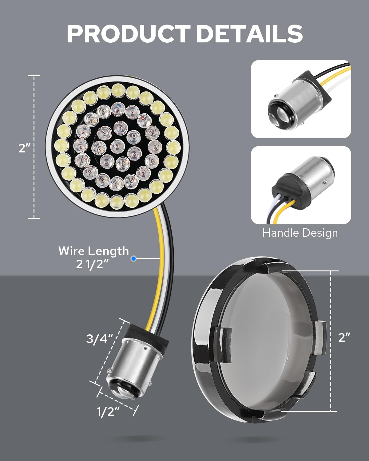 1. Compatibilidad con luces de giro de 2 pulgadas Las luces de giro LED son aptas para Harley con modelos de estilo de bala de 2″. Para Touring: Street Glide, Street Glide Special, Road Glide, Road Glide Special, Road King Special (Excluyendo CVO/Limited/Classic/Ultra). Para Sportster: Iron883, iron 1200, SuperLow 72 48, 883R 1200T, 1200 Low, etc.