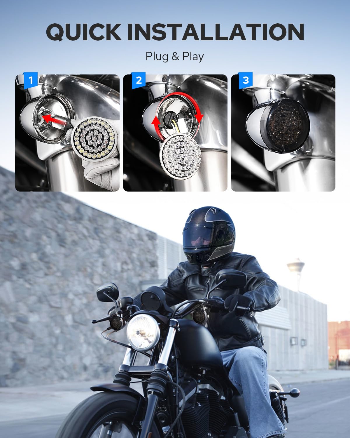 4. Instalación de luces Plug-and-play y diseño de mango integrado Las luces de giro LED son plug-and-play en modelos con carcasas de estilo de bala con doble contacto. No requiere componentes adicionales.