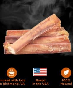 Calidad y Seguridad Alimentaria Son Nuestra Prioridad #1 Fabricamos el 100% de nuestros bully sticks bajo un programa de seguridad alimentaria líder en la industria, utilizando carne de res de pastoreo de alta calidad obtenida de agricultores confiables en América Central y del Sur. Nuestra instalación en EE. UU. sigue estrictamente los estándares de la FDA de EE. UU., probando, horneando y empaquetando cada artículo dentro de los EE. UU. para garantizar la seguridad. Sin Olor Ofensivo A diferencia de los bully sticks estándar cuyo olor natural puede resultar desagradable para algunos dueños de perros, nuestros bully sticks de res ahumados tienen un aroma tentador y ahumado que los perros y sus dueños adoran. Además, son libres de piel cruda y pollo, perfectos para perros con alergia al pollo. Este paquete incluye 12 bully sticks jumbo de 6 pulgadas, lo que los convierte en un tamaño ideal para razas grandes y masticadores agresivos. Las razas medianas y los masticadores ligeros también pueden disfrutar de ellos y los encontrarán como golosinas duraderas para perros (mientras que los perros más grandes pueden terminar un bully stick en una sola sesión). Estos bully sticks son más que solo sabrosas golosinas. También sirven como juguetes masticables divertidos y duraderos que ayudan a promover la salud dental al eliminar la acumulación de placa y sarro. Tu cachorro tendrá dientes más limpios y aliento más fresco, todo mientras disfruta de una experiencia de masticación satisfactoria. Estos bully sticks sin olor mantienen entretenido a tu amigo peludo, ya sea durante el tiempo de juego, para mantenerlos ocupados, o como una recompensa de entrenamiento para un buen comportamiento. Actualiza la selección de golosinas de tu perro con los Bully Sticks Jumbo Ahumados de Best Bully Sticks y descubre por qué son la opción preferida de los padres de mascotas que dan prioridad a la calidad, seguridad y ¡un buen momento con la cola moviéndose! – Sin Astillas – Sin Tratamientos Químicos – Sin Obstrucción Digestiva – Sin Aves de Corral – Seguro para Alergias al Pollo – Bajo en Grasa – Altamente Digestible – Lleno de Proteína Saludable
