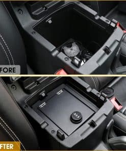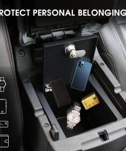 Caja de Seguridad para Consola Central Bloqueo de Brazo Organizador de Almacenamiento compatible con Jeep Wrangler JL/Gladiator JT 2018 2019 2020 2021 2022 2023. Protege tus objetos de valor incluso con las puertas y el techo quitados. Proporciona protección total para la privacidad y artículos personales, especialmente para objetos de valor como teléfonos, carteras, relojes, joyas y otros objetos valiosos. La caja de seguridad de la consola central no afecta la función del interruptor de la caja de apoyabrazos y mantiene los artículos de la caja de apoyabrazos ordenados. Resistente y duradero: este producto está hecho de acero al carbono de alta calidad con recubrimiento antiherrumbre en la capa exterior para una larga vida útil. Contraseña de 3 dígitos: la combinación de 3 posiciones proporciona protección total para la privacidad o objetos de valor. Compatibilidad: Compatible con Jeep Wrangler JL/Gladiator JT 2018 2019 2020 2021 2022 2023.