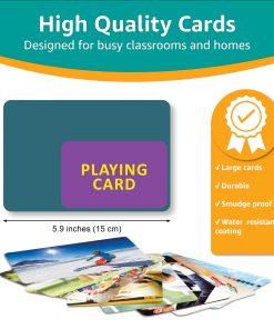 ACERCA DEL PRODUCTO: Disfruta enseñando sentimientos y emociones con este set de tarjetas didácticas educativas de alta calidad. Impresas en cartulina de arte recubierta y empaquetadas en una caja personalizada, ofrecen un valor duradero. Cada tarjeta tiene un tamaño de 5.9″ x 3.9″ y representa imágenes ‘reales’ de (1) personas experimentando una variedad de emociones, (2) una gama de conceptos espaciales, (3) personas realizando una variedad de acciones. (4) pares opuestos (5) grupos de objetos y (5) objetos emparejados � aquellos que inherentemente van juntos. La guía paso a paso brinda a los maestros y padres la oportunidad de moverse de una actividad a otra en orden de complejidad, atendiendo así a personas en diferentes etapas de comprensión y expresión de nombres. Audiencia Objetivo Estas tarjetas didácticas son adecuadas para niños y adultos y son una herramienta de aprendizaje ideal para patología del habla, ESL (Inglés Como Segundo Idioma), ABA (Análisis de Comportamiento Aplicado), intervención temprana y como recurso para autismo. Sobre el Fabricante En Picture My Picture nuestra intención es hacer que el aprendizaje sea fácil y divertido. Nuestra gama de juguetes y juegos, incluidas nuestras tarjetas de idioma, fomentan la adquisición de vocabulario y el desarrollo del lenguaje, así como la mejora de las habilidades de comunicación y conversación.