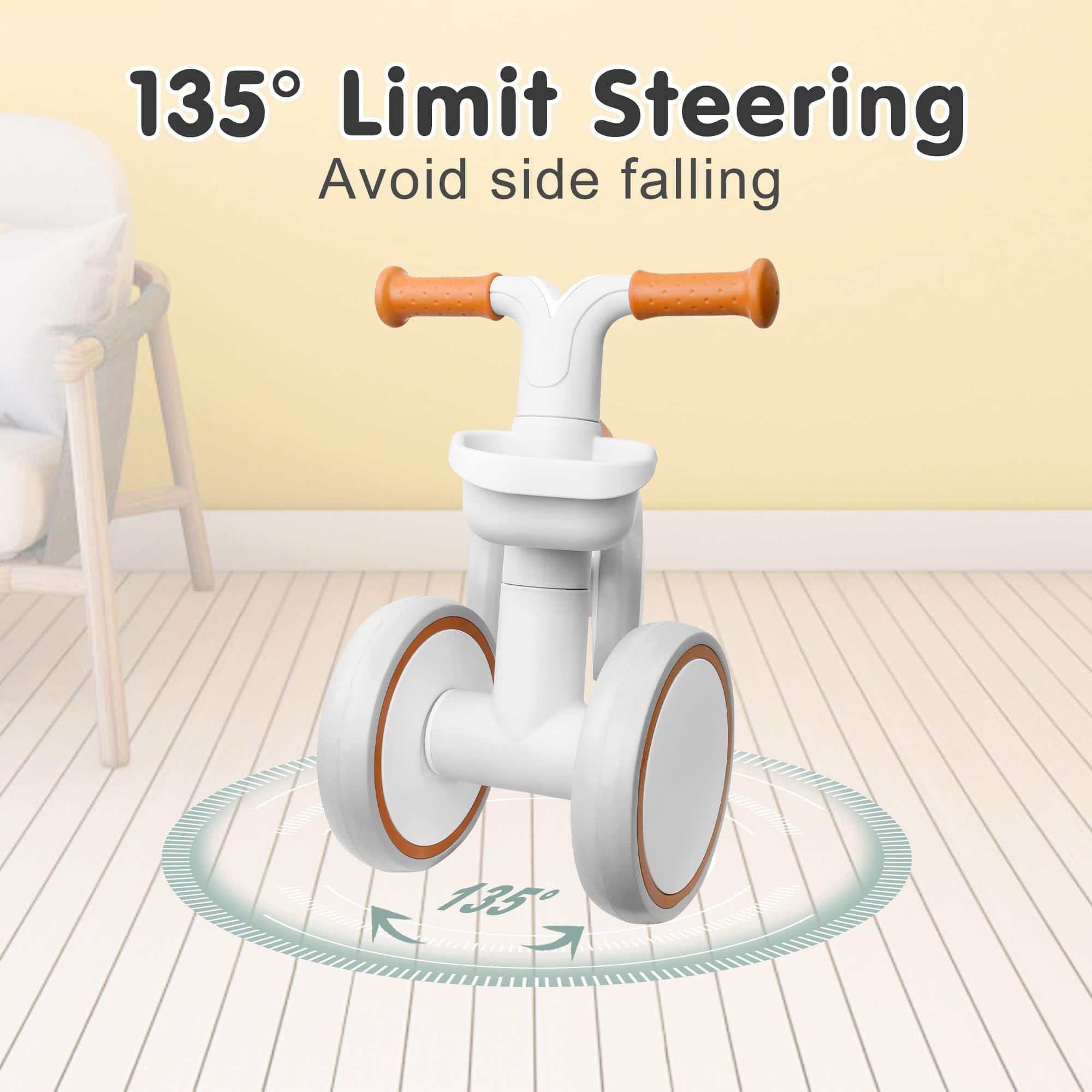 3. CONDUCCIÓN SEGURA: 4 ruedas completamente cerradas y ensanchadas sin pedal para evitar que los pies del bebé se pellizquen; límite de giro de 135 ° para evitar que el bebé se voltee, sin preocuparse por temblores y oscilaciones; Cuerpo liso sin piezas afiladas ayuda al bebé a usarlo de manera segura.