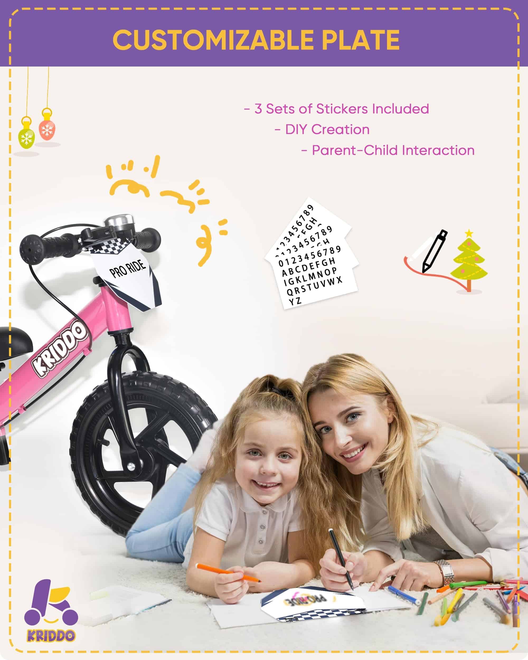 Bicicleta de Equilibrio KRIDDO Pro para Niños -Rosa