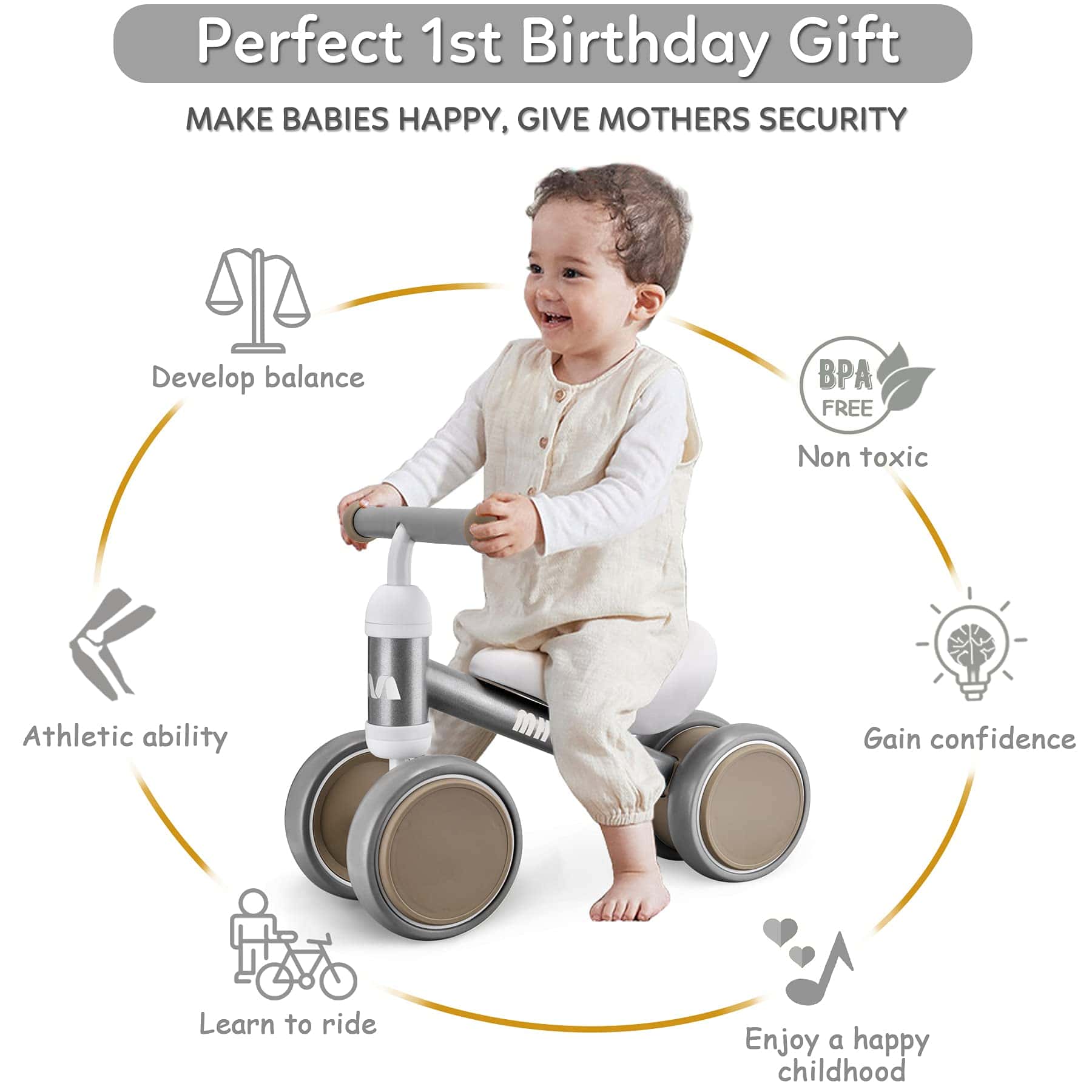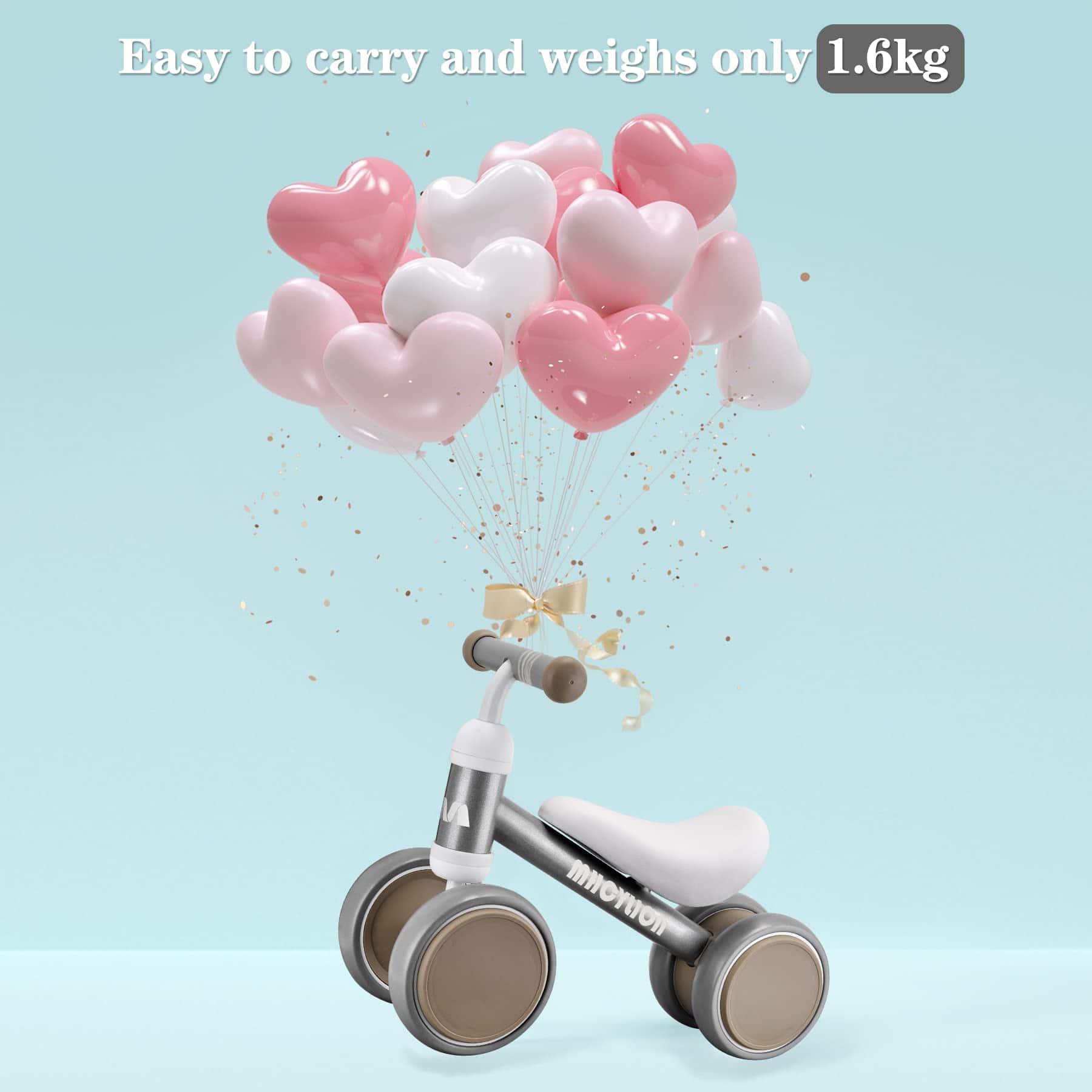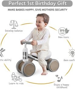 1. Regalo perfecto para bebé de 1 año: La bicicleta de equilibrio de MHCYLION ayuda a su bebé a moverse de forma independiente mientras brinda el apoyo necesario. Úsala tanto al aire libre como en interiores, juega donde el bebé quiera.