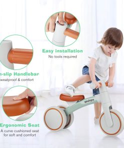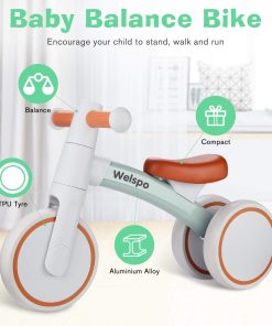 ¿Por qué elegir la bicicleta de equilibrio para bebés Welspo? En comparación con otros productos, nuestra bicicleta de equilibrio para bebés utiliza un diseño avanzado y seguro. Límite de dirección de 135 para evitar que su bebé se voltee. Ayuda a los niños a usar sus piernas para empujar el suelo y avanzar, aprender a caminar, desarrollar habilidades motoras activas, disfrutar del paseo y ganar confianza desde una edad temprana. Disfruta de la diversión de las bicicletas por adelantado para este caminante de bebés. Características: Dirección segura limitada a 135 para evitar que el bebé se caiga hacia un lado. Ruedas antideslizantes y silenciosas para un fácil paseo para los bebés. Fuerte y cómoda. Aumenta la fuerza, el equilibrio, la coordinación y la confianza. Bicicleta de 3 ruedas sin pedales. Uso en interior y exterior. El mejor regalo para niños y niñas. Especificaciones Nombre: Bicicleta de Equilibrio para Bebés Welspo Material: Aleación de aluminio, PU, TPU, EVA Peso: 3 libras Edad recomendada: 12-36 meses Carga máxima: 44 libras Dimensiones: 24 x 14 x 6 pulgadas Altura (suelo a manillar): 1.1 pies Altura (suelo al asiento): 0.8 pies Notas de advertencia: Los padres deben ensamblar la mini bicicleta antes de usarla. Asegúrese de que los lugares estén seguros y NO deje a los niños solos mientras juegan. La bicicleta para bebés no es adecuada para pendientes, calles, caminos, baches, calles fangosas y mojadas. La edad de uso es de 12 a 36 meses.
