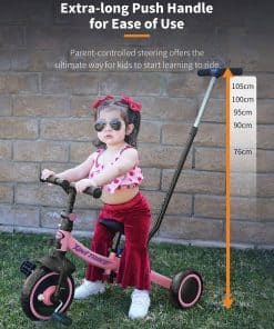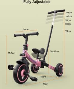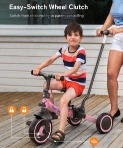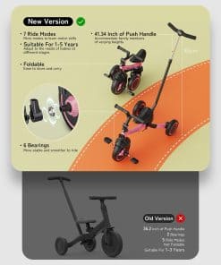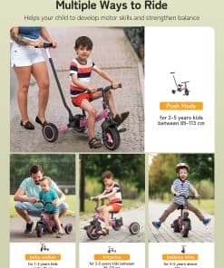 La bicicleta todoterreno besrey 7 en 1 es el compañero perfecto para su niño pequeño de entre 1 y 5 años. Con un manillar de dirección ajustable en 5 alturas, esta bicicleta garantiza que los miembros de la familia de diferentes alturas puedan disfrutar de paseos suaves y sin esfuerzo. Puede ser utilizado en múltiples modos de manejo, lo que la convierte en un juguete versátil para interiores y exteriores. La capacidad de cambiar entre el modo de dirección por parte de los padres, triciclo, bicicleta de equilibrio, y andador, permite a su hijo experimentar diferentes formas de aprender a andar en bicicleta. El embrague simplificado facilita que su niño pequeño practique pedalear mientras usted sigue teniendo control sobre el triciclo. Una vez que esté listo, puede quitar el manillar de dirección para padres y dejar que su hijo conduzca solo. La bicicleta ofrece un paseo cómodo y estable gracias al mecanismo de absorción de impactos en la rueda delantera y los rodamientos resistentes en las ruedas. El asiento suave y ajustable en altura, junto con el manillar que se puede ajustar hacia adelante y atrás, garantizan una experiencia de manejo personalizada para su hijo. Esta bicicleta está diseñada para durar, con una calidad de aluminio de grado aeronáutico resistente que está construida para pasar de generación en generación. Permita que su hijo disfrute de aprender a andar en bicicleta con la bicicleta todoterreno besrey 7 en 1.