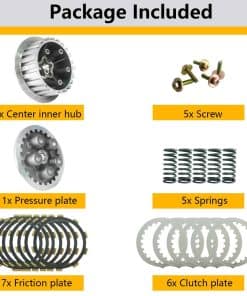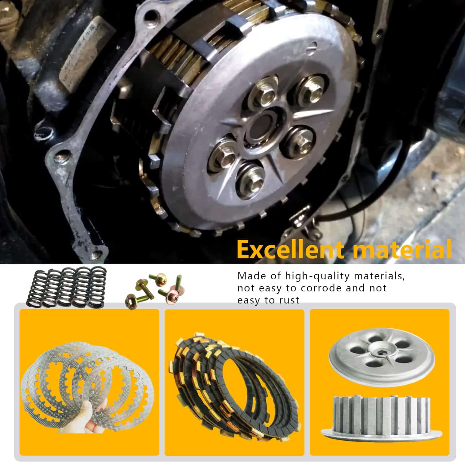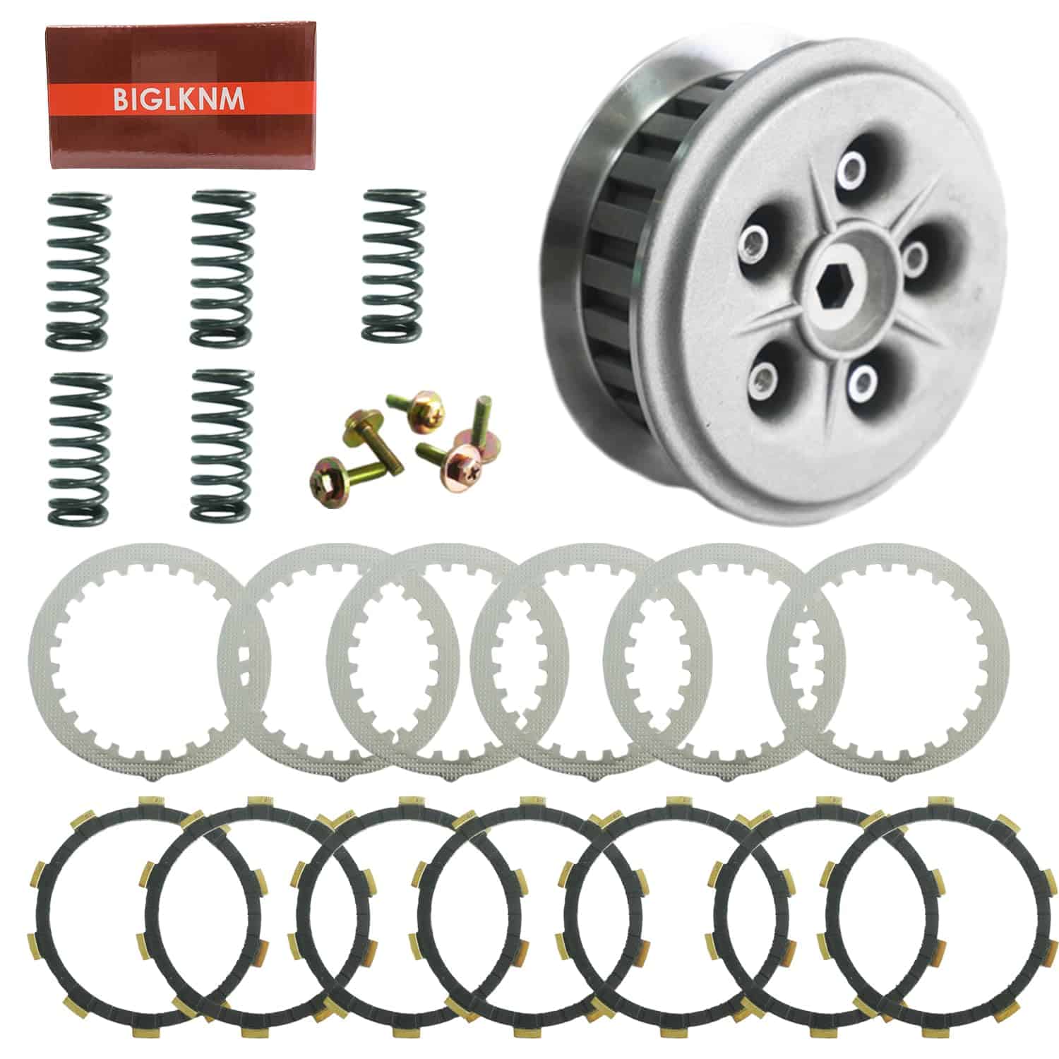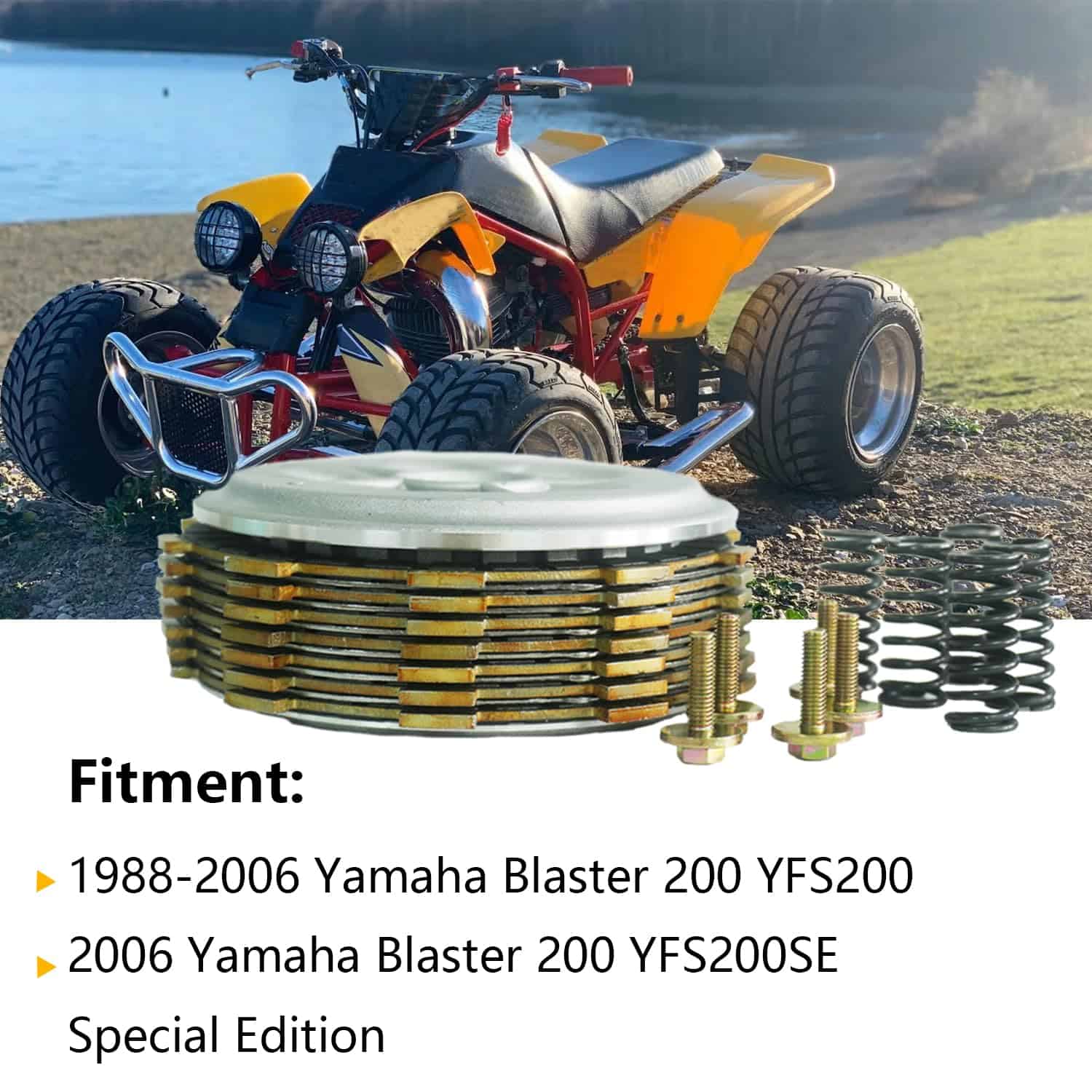 BIGLKNM Kit de Embrague Centro Cubo Interior & Placa de Presión Exterior & Kit de Embrague con Resortes de Alta Resistencia para ATV 1988-2006 Ya-maha Blaster 200 YFS200. Este kit de embrague es compatible con los modelos Ya-maha Blaster 200 YFS200 de 1988 a 2006, así como el modelo especial Ya-maha Blaster 200 YFS200SE Edición Especial del año 2006. Antes de realizar la compra, por favor asegúrese de que sus modelos sean aplicables a nuestros productos. El kit incluye una placa de presión, un cubo interior del centro, tornillos, resortes, placas de fricción y placas de embrague. Fabricado con materiales duraderos de alta calidad, este kit de embrague ofrece un rendimiento profesional y resistencia al desgaste. Si tiene alguna pregunta sobre este producto, no dude en contactarnos y le responderemos en un plazo de 24 horas. Ofrecemos la opción de devolución gratuita o reembolso si surge algún problema con el producto.