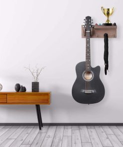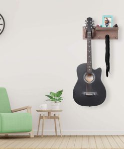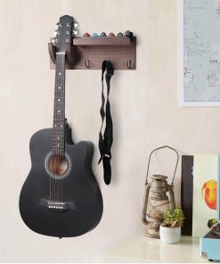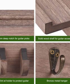 Bikoney Wall Mount Guitar Holder ,Wood Guitar Hanger, Guitar Wall Hook for Display and Decor. A good gift for guitar enthusiasts with a torched finish feature a rustic style adds a retro in your room, perfect home & office decoration. Multifunctional guitar Holder with a lint on the guitar hold to avoid leave an Imprint on your guitar, 3 mm deep enough long notch for guitar picks, solid wood shelf for guitar accessory: such as your photos, trophy, tuner, guitar capos and so on, 3 hooks for guitar’s straps, medals. A good way to show your guitar by putting your guitar neck on the holder to hang it on the wall, making it easy to find and saving cupboard space. Customer satisfaction is our priority with a money-back guarantee. Specification: Colour – Weathered Walnut, Material – Wood, Size – 15 inch (L) x 4.5 inch (W) x 5.5 inch (H).