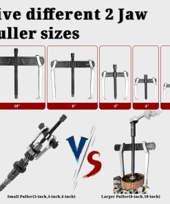 Herramienta separadora de 2 mordazas para la extracción de poleas, engranajes, rodamientos atascados o con tolerancia pequeña sin dañarlos. Puede ser utilizada en volantes de automóviles, ruedas de motocicletas, ruedas de bicicletas, ruedas de coches, ruedas de máquinas, etc.