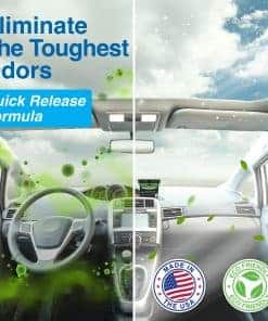 El Eliminador de Olores ClO2 utiliza tecnología avanzada de dióxido de cloro para neutralizar los olores obstinados en su origen, proporcionando una limpieza profunda que elimina los olores en lugar de enmascararlos. Su fórmula de liberación rápida permite una aplicación sin esfuerzo, perfecta para estilos de vida ocupados, y funciona en solo unas pocas horas. No tóxico y respetuoso con el medio ambiente, este producto es seguro tanto para su familia como para el medio ambiente, con ingredientes biodegradables que no dejan residuos dañinos. Ideal para autos, camiones y camionetas, su solución compacta y versátil asegura una frescura duradera, combatiendo olores a humo, mascotas, comida y más para una experiencia de manejo agradable.