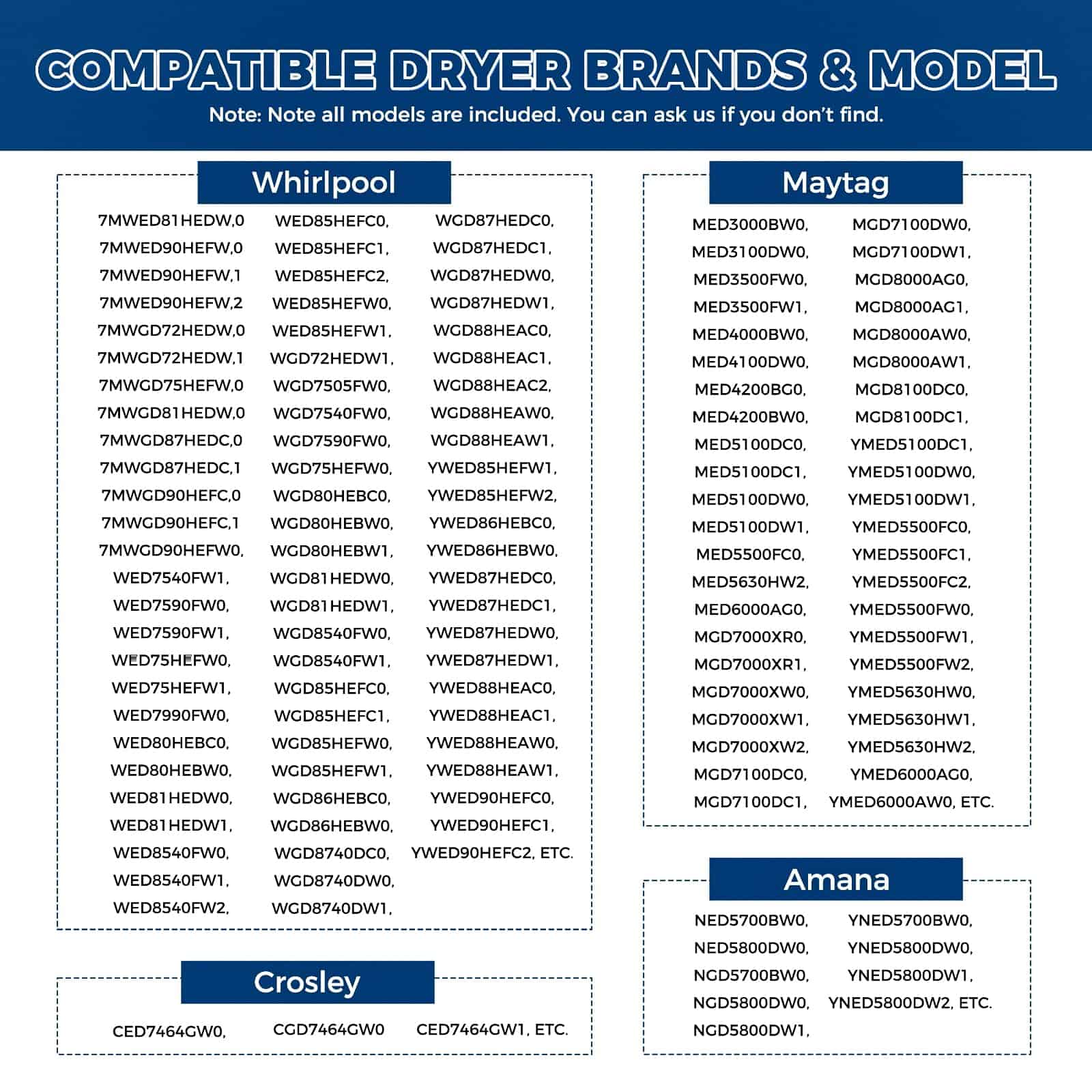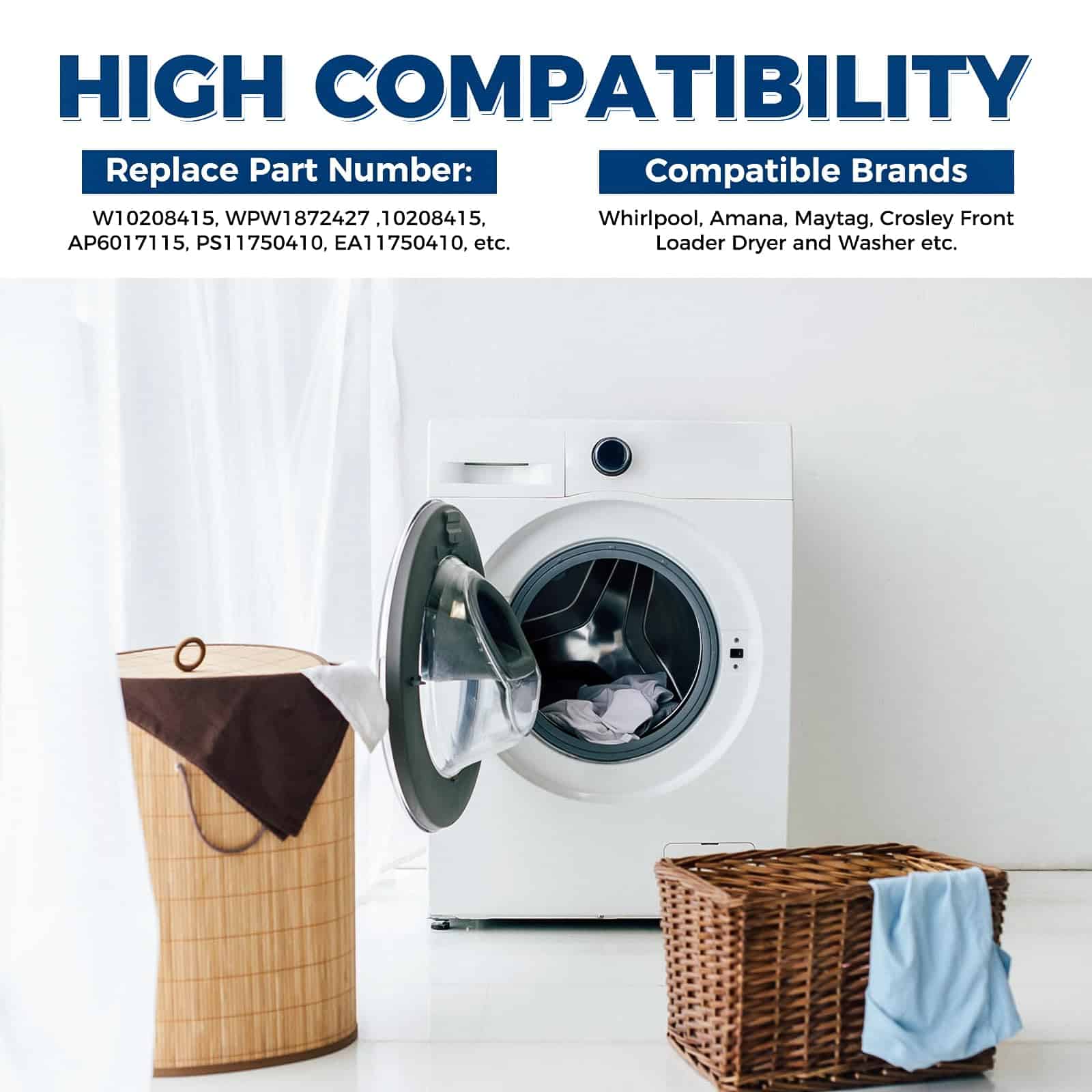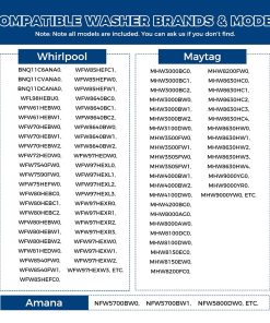 La bisagra de puerta W10208415 para lavadora/secadora es un repuesto de alta calidad fabricado en acero laminado en frío, lo que le proporciona una resistencia superior en comparación con el acero ordinario. Ha sido cuidadosamente probada por el fabricante para cumplir con los estándares OEM y garantizar una vida útil prolongada. Esta bisagra de puerta es compatible con una amplia gama de marcas de renombre como Maytag, Whirlpool, Jenn-Air, Kenmore, y más. Puede reemplazar fácilmente los números de parte W10208415, 1872427, AP6017115, PS11750410, EA11750410, entre otros. Esta bisagra es ideal para lavadoras y secadoras de carga frontal, como los modelos MHW3100DW0, MHW3500FW0, 7MWED81HEDW0, WED7590FW1, WGD88HEAW0, YWED81HEDW1, etc. Es importante reemplazar la bisagra de puerta cuando comience a mostrar síntomas como la puerta que se baja lentamente, el raspado del marco de la secadora, falta de sellado, o rotura de la parte superior de la bisagra. La instalación de la bisagra W10208415 es fácil y sencilla, y puede encontrar un video paso a paso en YouTube. Recibirá un paquete que incluye la bisagra de puerta de carga frontal para lavadora/secadora W10208415 de alta calidad. Si tiene alguna pregunta sobre el producto, no dude en contactarnos y le responderemos lo antes posible.