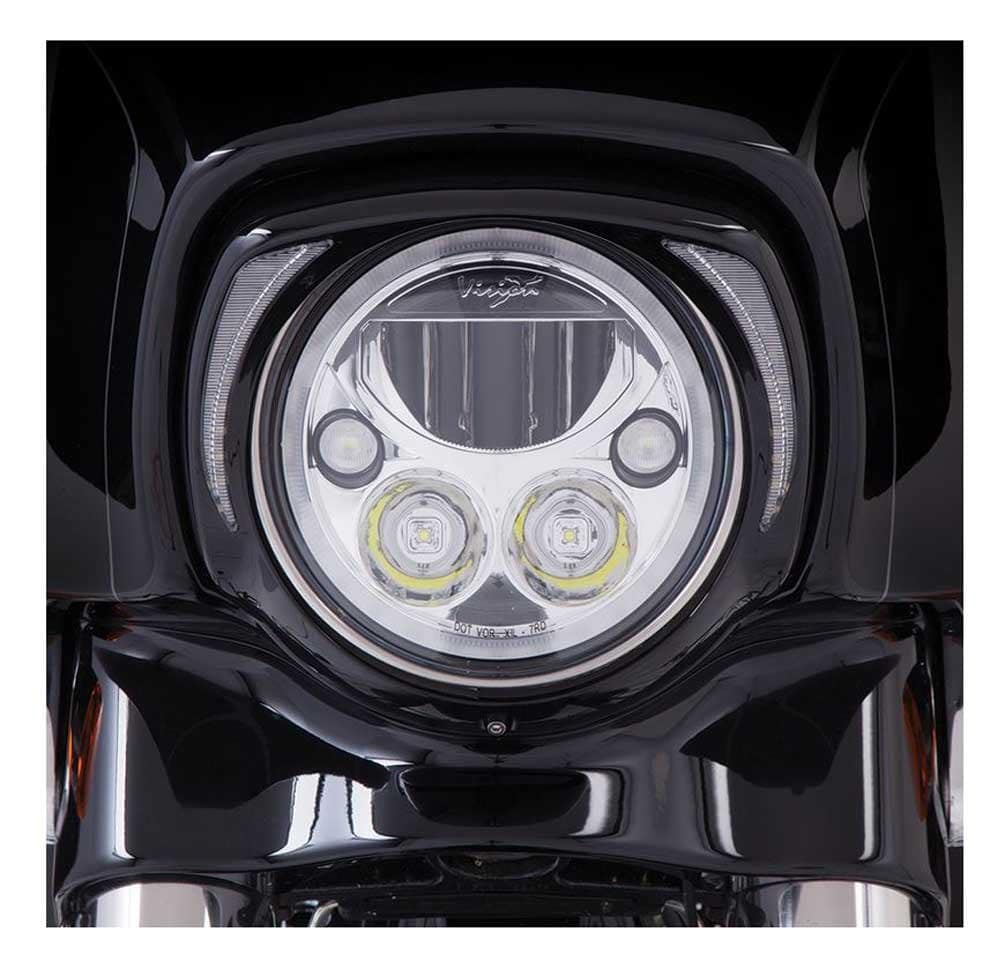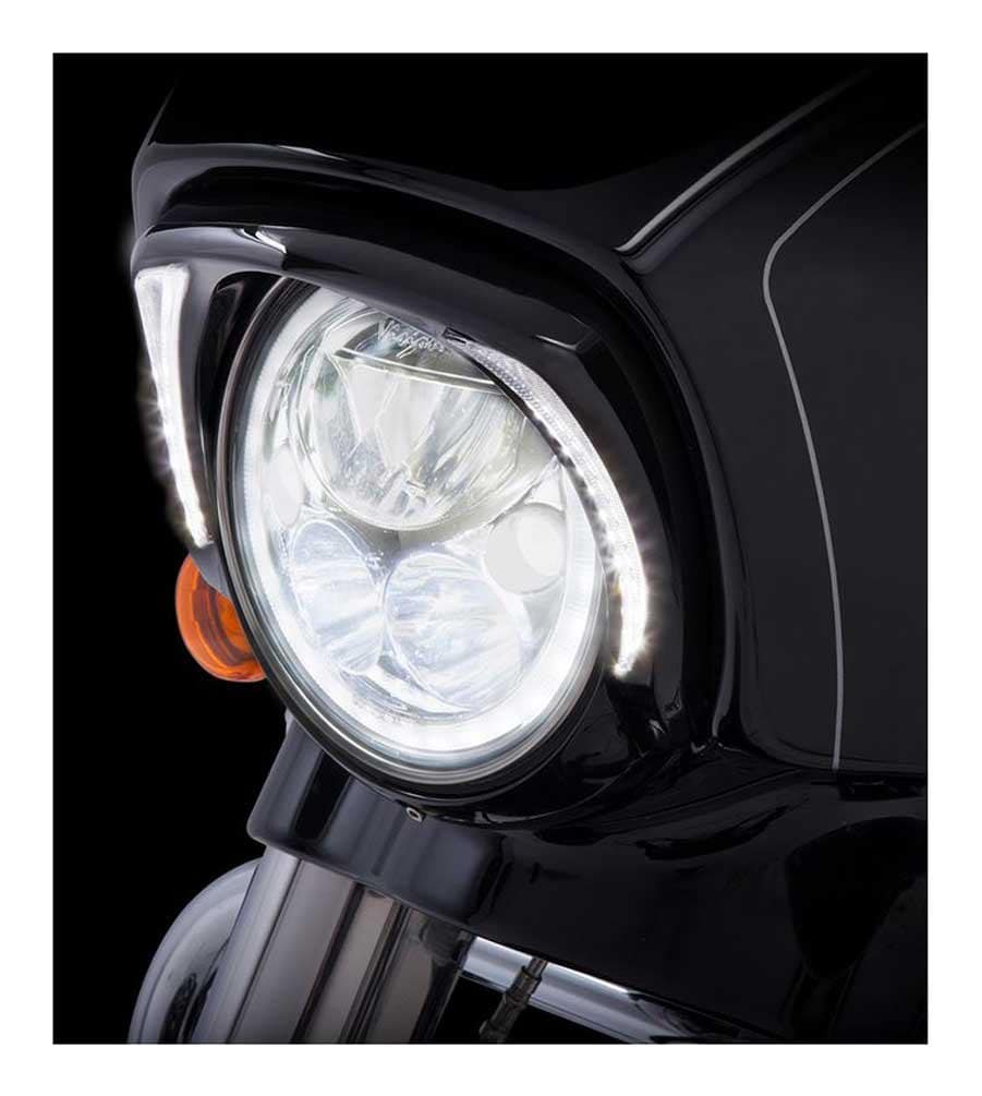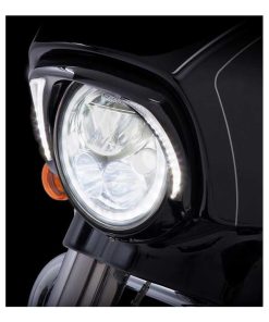 Fits 2014-2016 Harley-Davidson FLH Touring Models. Una manera simple y elegante de añadir iluminación adicional en la parte delantera de la motocicleta. Cuenta con luces LED blancas en forma de colmillo para destacar la moto del resto. Perfectamente esculpido para ocupar el espacio alrededor del faro y darle un aspecto aerodinámico a la careta. Fácil instalación en el faro, incluye todo lo necesario. Conectar y listo en el arnés de cables de fábrica. Fácilmente removible para dar servicio al faro. Cromado o negro brillante para complementar los colores OEM populares. El bisel negro está listo para pintar para hacer una coincidencia de color a medida.