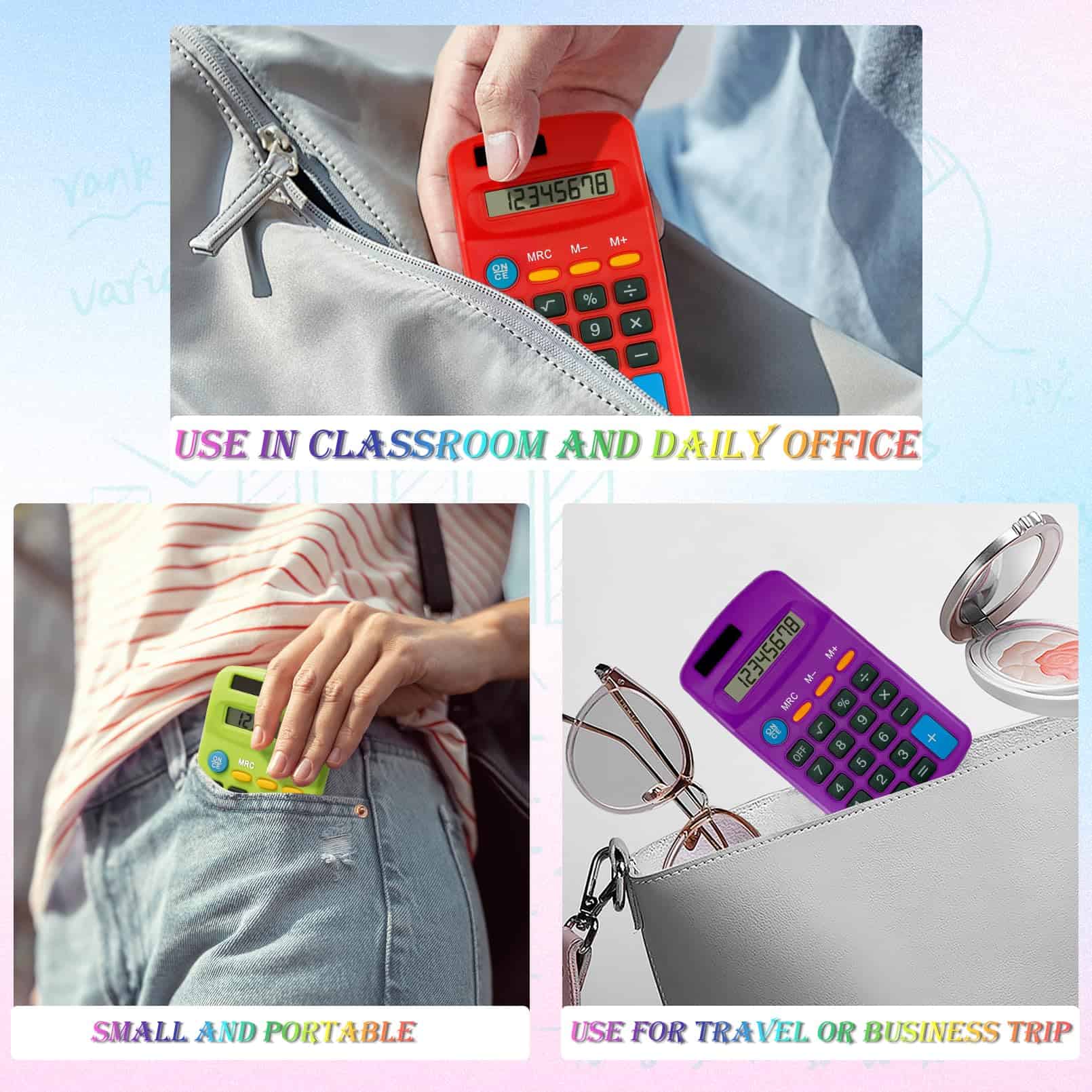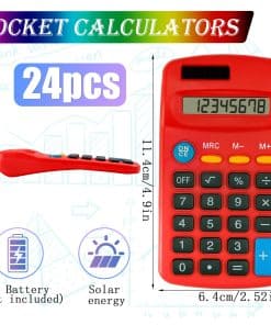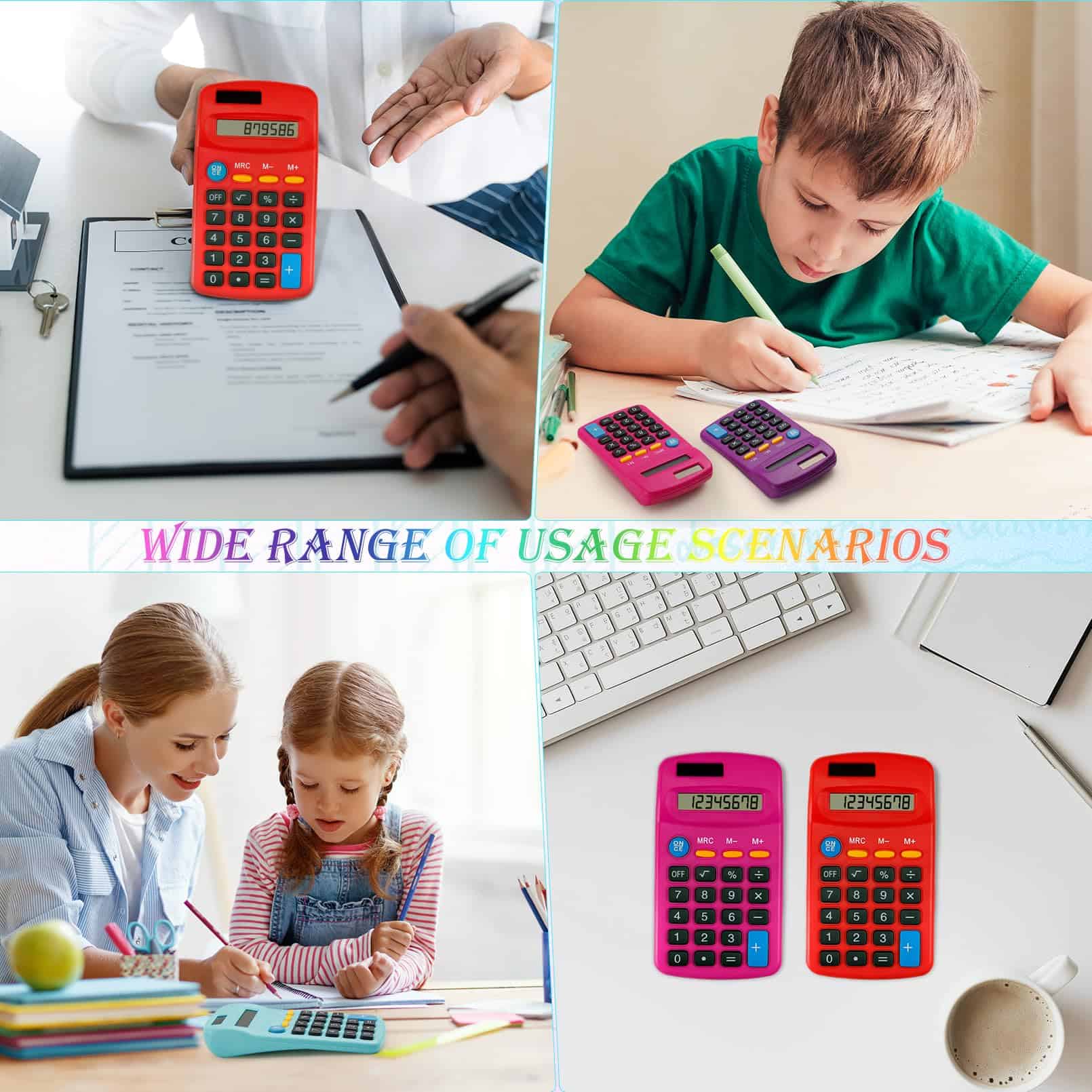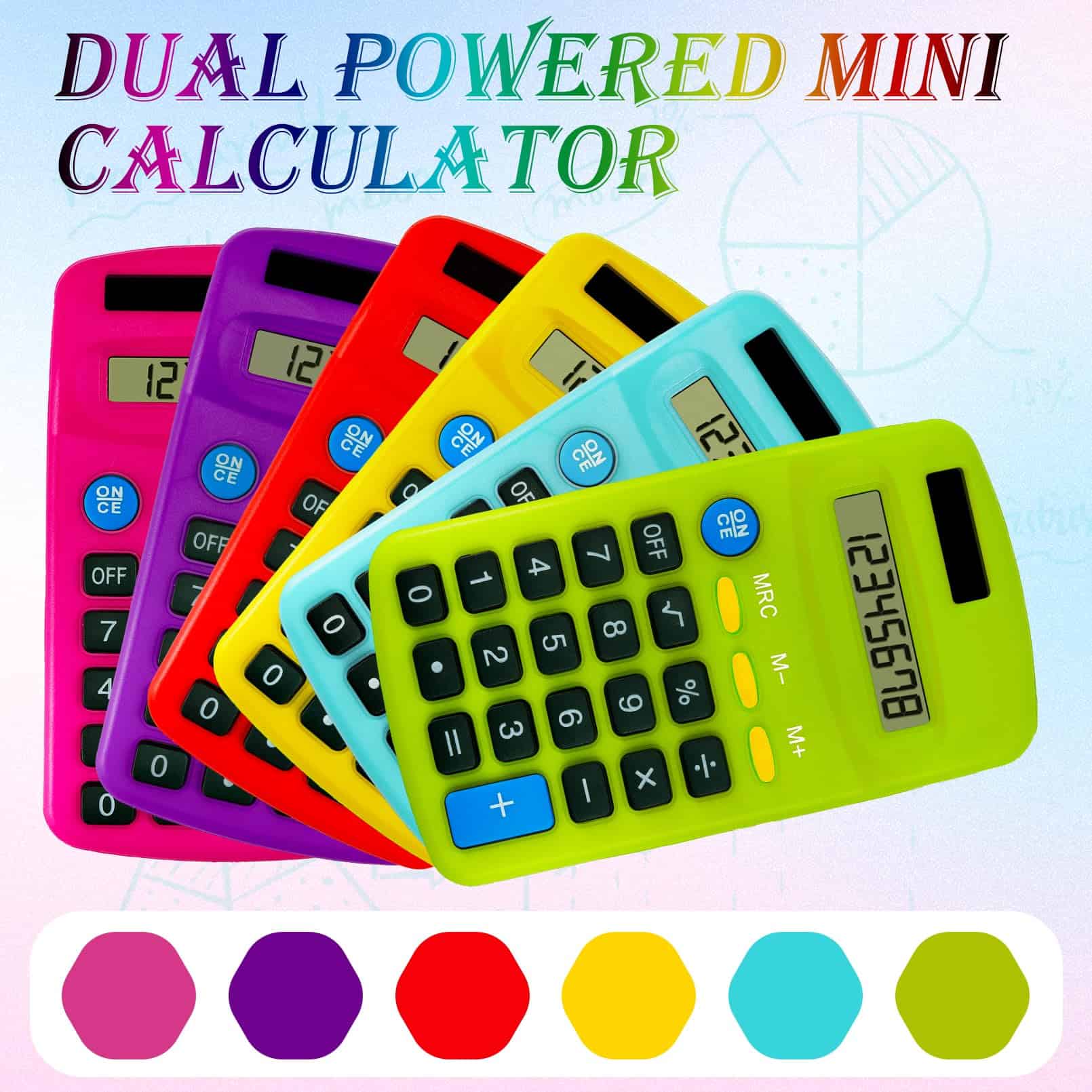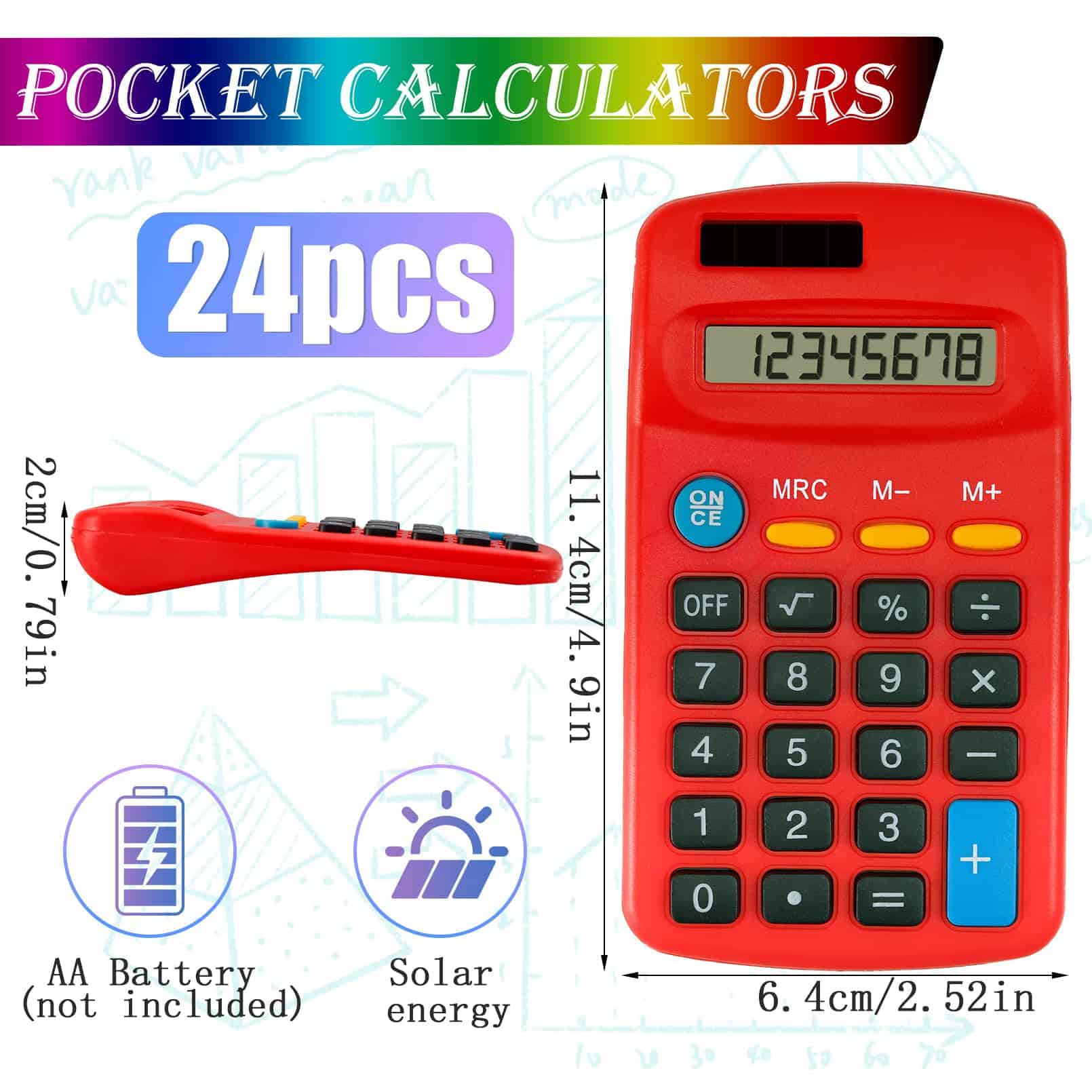 1. Abundante Cantidad: El paquete viene con 24 mini calculadoras de tamaño de bolsillo en 6 colores diferentes. Suficiente cantidad y colores pueden satisfacer sus diferentes necesidades o compartir con sus amigos y compañeros de clase.