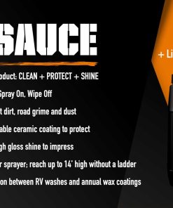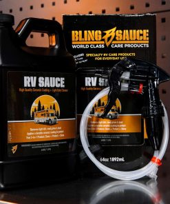 Bling Sauce RV Sauce es un producto revolucionario que combina la acción de limpieza, protección y brillo en un solo paso. Con su fórmula única, este producto es fácil de usar: simplemente rocíalo y límpialo para eliminar la suciedad ligera, grasa de la carretera y polvo, mientras que aplica un revestimiento cerámico duradero para proteger la superficie. Además, Bling Sauce RV Sauce proporciona un brillo de alto brillo que impresionará a todos. ¡Haz que tu vehículo luzca como nuevo con Bling Sauce RV Sauce!