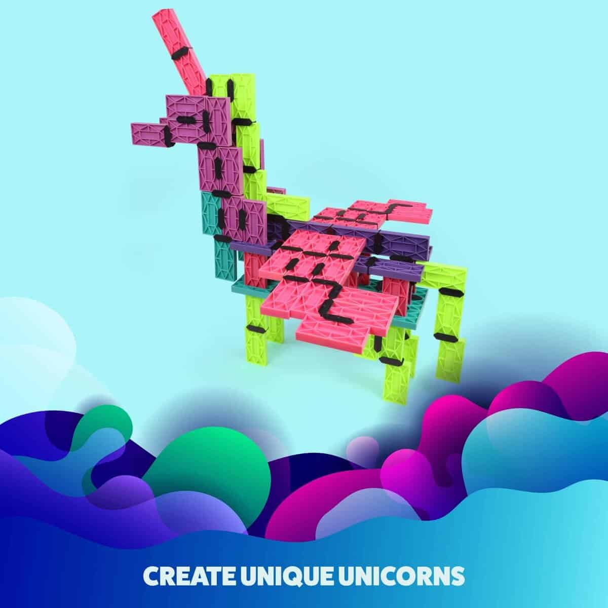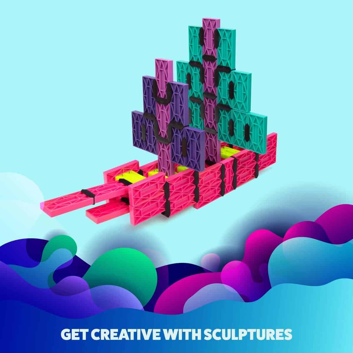 3. Apila y explora como nunca antes con estos bloques especiales entrelazados. Úsalos en conjunto con los clips para crear y construir modelos 3D, puentes, torres, estructuras, dominós graduados y ¡mucho más!.