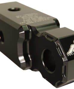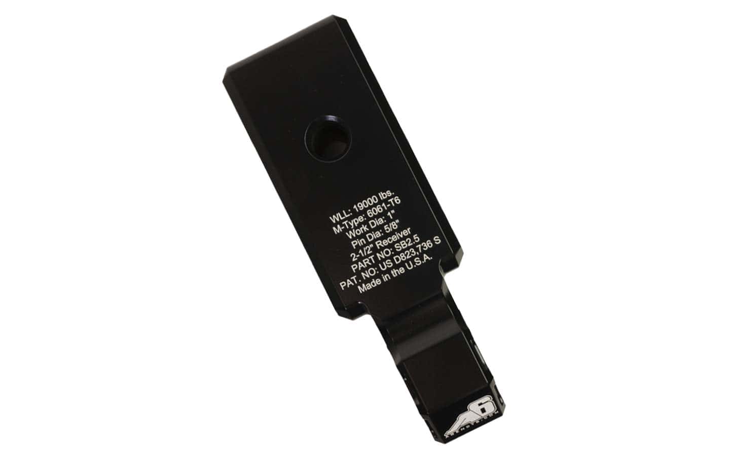 Bloque de anilla de recuperación Agency 6 XL (Doble Orificio Lateral/Único Orificio Superior): Aluminio mecanizado CNC certificado por EE. UU. 6061 T6. Diseño de bloque innovador con un límite de carga de trabajo de 19,000 lbs capaz de operaciones de recuperación estándar en situaciones todoterreno. Se adapta a todos los receptores estándar de 2.5 pulgadas y anillos de anilla de 7/8 de pulgada. El Bloque de Anilla incluye 2 puntos de montaje de pasador para configuración de bloque vertical y 1 agujero de montaje de pasador para configuración de bloque horizontal. Este ensamblaje incluye una anilla calificada a 13,000 lbs. No exceda el límite de carga de trabajo (WLL) más bajo de ningún componente (por ejemplo, vehículo, receptor de enganche, etc) – Acabado: Recubrimiento en Polvo Negro – Parte SB2.5-A-BLK Hecho en EE. UU. – .
