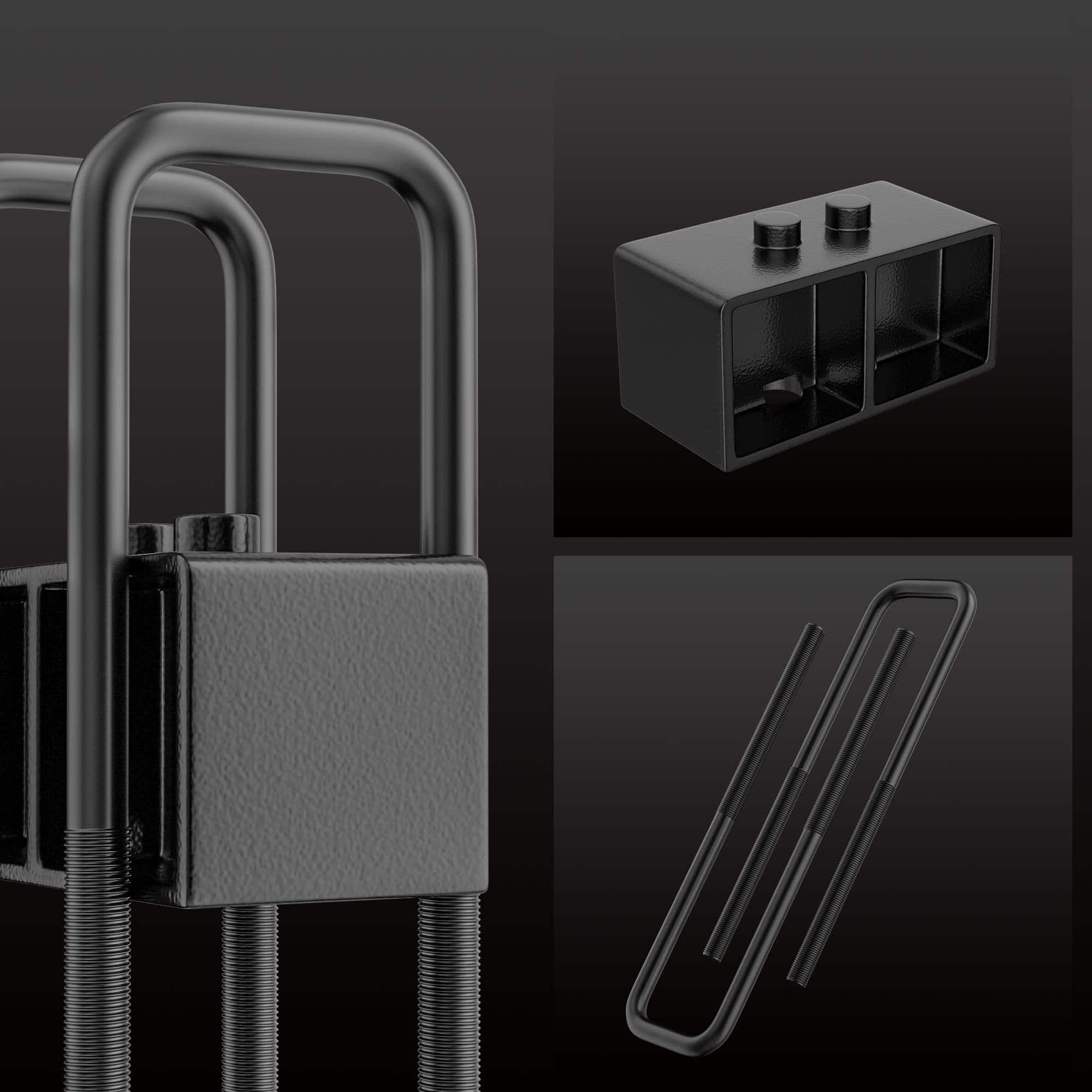 El Bloque de Elevación Trasera de 3 Pulgadas es el complemento perfecto para mejorar la parte trasera de tu F150, brindando un cambio perfecto en la apariencia, rendimiento y estilo de tu camioneta. Hecho para ser compatible con F150 2WD y 4WD de 2004 a 2020, este kit de elevación brinda una elevación de 3 pulgadas en la parte trasera para una mayor distancia al suelo y la capacidad de conquistar obstáculos fuera de la carretera. Fabricado con material de aleación de aluminio forjado 6061-T6, este bloque es resistente y duradero, con un recubrimiento de polvo negro que proporciona una excelente resistencia a la corrosión. El bloque de elevación trasero cuenta con un diseño de placa de refuerzo transversal que brinda un soporte adicional en comparación con otros productos en el mercado. La instalación es rápida y sencilla, sin necesidad de cortes ni perforaciones, y no se requiere desmontaje de amortiguadores o bobinas. Mejora tu F150 con este bloque de elevación trasera de 3 pulgadas y disfruta de una camioneta más agresiva y capaz.